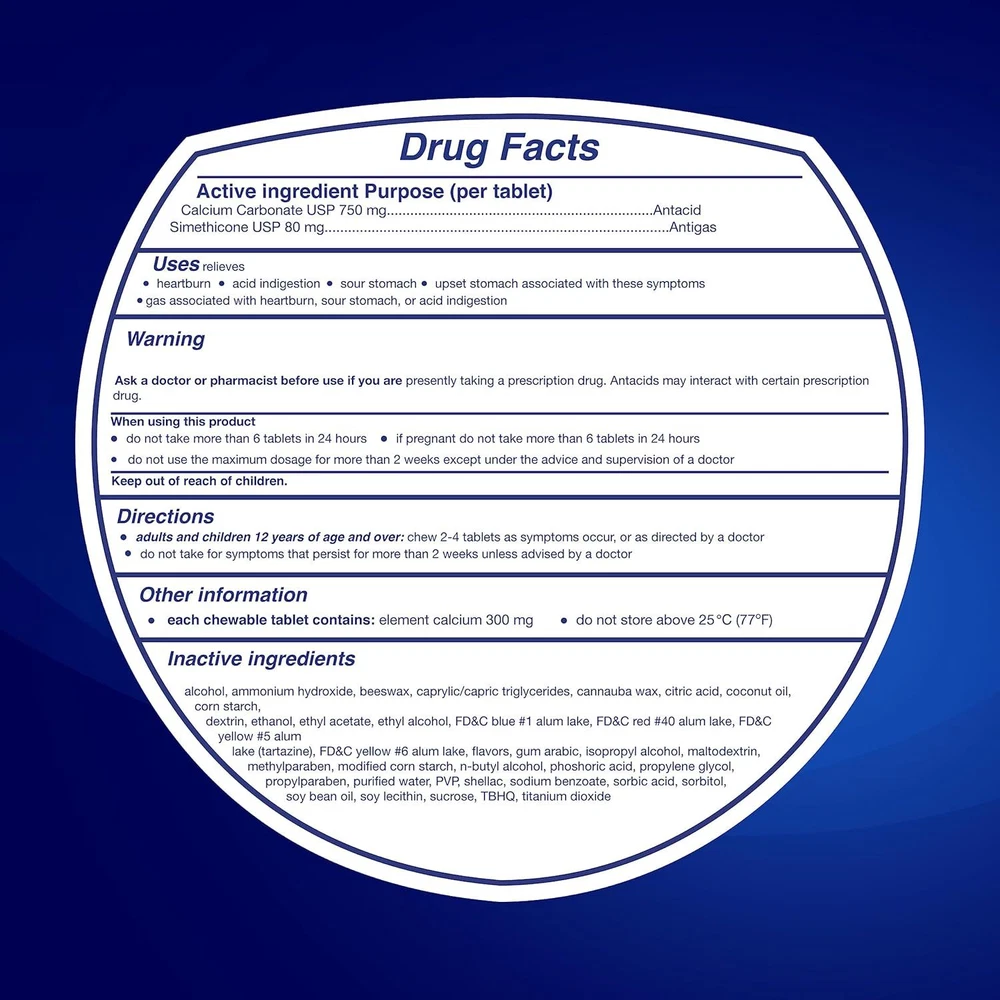 TUMS Chewy Bites Chewable Antacid Tablets with Gas Relief, Lemon & Strawberry - 54 Count