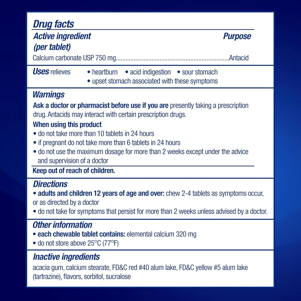 TUMS Extra Strength Chewable Sugar Free Antacid Tablets for Heartburn Relief, Melon Berry - 80 Count