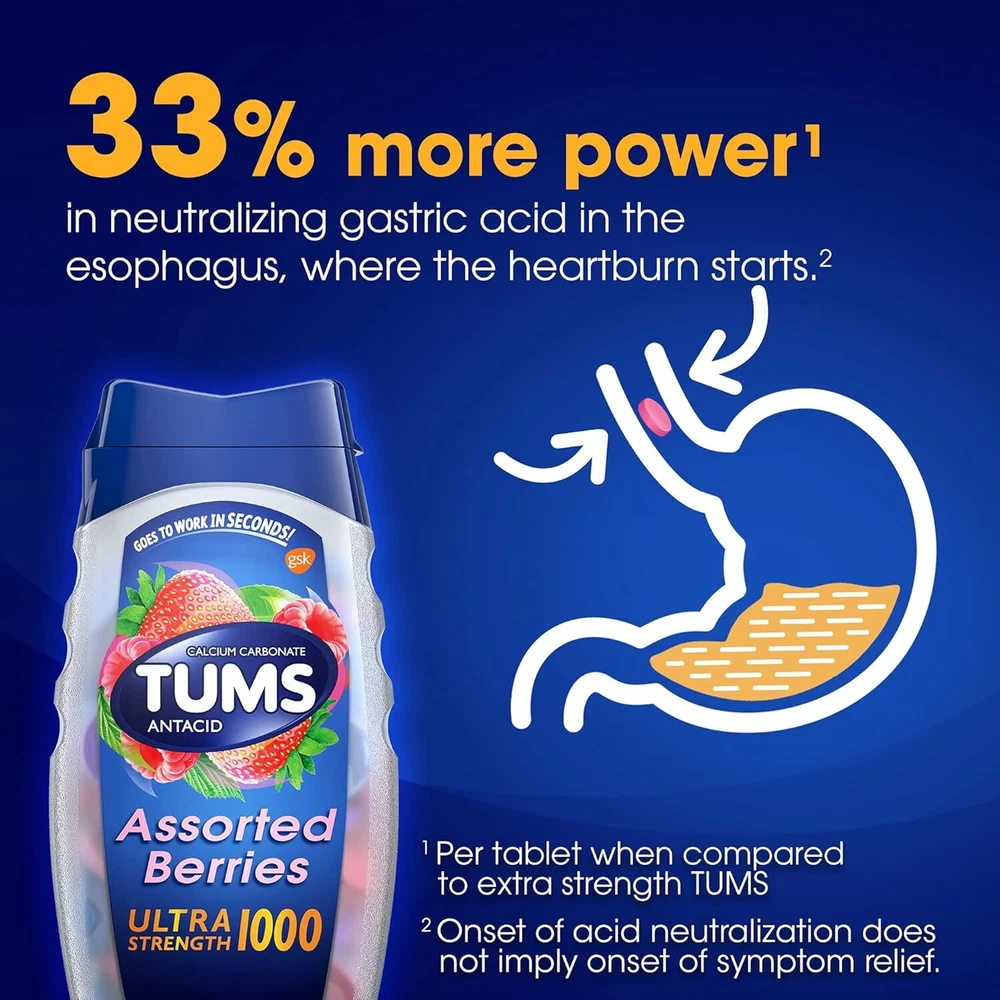 TUMS Ultra Strength Chewable Antacid Tablets for Heartburn Relief and Acid Indigestion Relief, Assorted Berries - 72 Count
