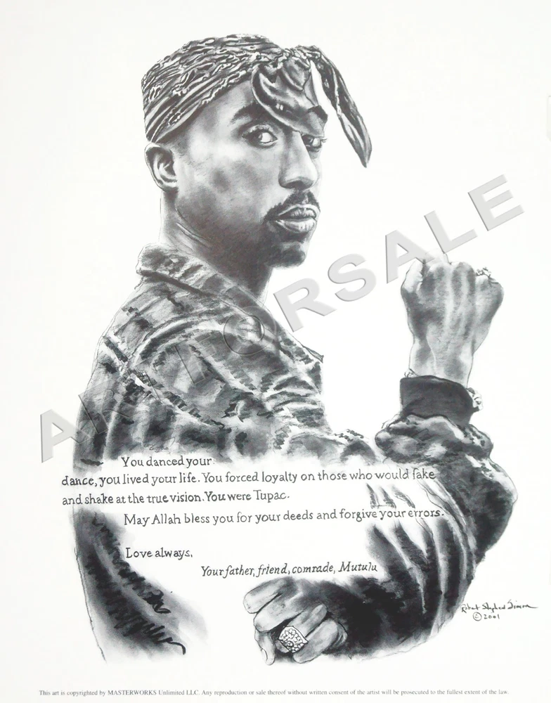 OWN A PIECE OF TUPAC / RAP / AMERICAN HISTORY ! The ARTFORSALE watermark will not appear on your print TUPAC SHUKAR COLLECTABLE. You are purchasing an 11 x 14 museum quality lithograph printed on 100% acid free stock. The artist, Robert Stephen Simon, was a nationally acclaimed portrait artist who through many years of hard work and total dedication to his craft has risen to the highest echelons of graphic and commercial art in America and throughout the World. Sadly he passed May 29, 2014. This collectible Lithograph is new and not circulated from an early edition. "You danced your dance, you lived your life. You forced loyalty on those who would fake and shake at the true vision. You were Tupac. May Allah bless you for your deeds and forgive your errors. Love always, Your father, friend, comrade, Mutulu." Tupac Shakur was born Lesane Parish Crooks in Brooklyn, NY in 1971. While still a small child, his mother changed his name to Tupac Amaru after an Inca Indian revolutionary, "Tupac Amaru", meaning "Shining Serpent". "Shakur" means "Thankful To God" in Arabic. The highlight of Tupac's acting career came when he appeared in "Poetic Justice" besides Janet Jackson. On September 7th, Tupac Shakur was shot by unknown gunmen and died on September 13, 1996. Much of what happened on this night remains a mystery to this very day. Music Groups: One Nation Emcees, Two From The Crew, Strictly Dope, Digital Underground, Thug Life, and Outlaw Immortalz/Outlawz. *Only the highest quality, brand new, mint condition, fine Lithographs - brand new original stock from the original publisher are offered. We guarantee the finest quality posted on eBay. We do not sell poor quality or used poster prints. When you purchase through from us, you can be assured that you will receive "authentic Edition", prints, professionally printed on the highest quality papers at he time of publication.