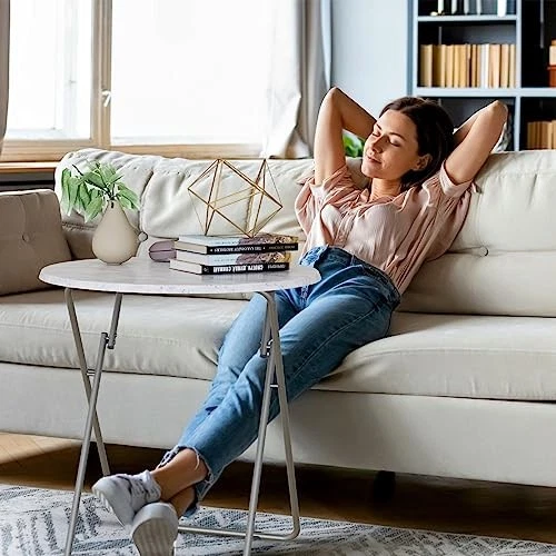 Menu 1. We require immediate payment. 2. We currently accept payment via eBay managed payments only. 3. Once payment is cleared, we will dispatch your shipment within 1-3 business days. Please refer to the "Shipping" tab for more information regarding shipping speed to your destination. TV Tray Table, Round Folding Table, Foldable Snack Tray for Eating, Small Folding Table Set of 2, Dinner Table for Couch, Living Room, Small Space (White Marble, 2Pcs) Product description [Fashion Style Design] - The small round table with modern style, you can't take your eyes off its charming style. Only as a functional piece (cocktail table/card table/pub table), but also as a stylish home decoration that complements your interior design. [Folding Table&Save Space] - This folding tray table is designed to easily fold flat and be stored under your sofa or bed, freeing up valuable living space; When folded, the TV tables is portable to be carried anyw needed, or even taken on trips,as outdoor picnic table. [Enhanced Stability] - The dinner snack table is supported by high-density steel pipes and sprayed with silver protective coating to prevent rust and fade; Non-slip pads, and a strong tabletop, ensuring the table remains steady and secure during use. [Suitable Size] - This party side table in 17.7" L x 17.7" W x 25.6" H is conveniently designed for your phone, tablets, laptops, snacks, beverages, etc. [Fully Assembled] - No assembly required, only one step is necessary to fold flat or set up for use. (Enjoy its convenience and style within ten second) PLEASE MESSAGE US IF YOU HAVE ANY OTHER QUESTIONS, AND MANY THANKS FOR READING ALL OF THIS. Copyright ©#. All Rights Reserved.