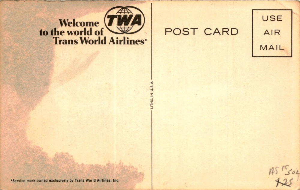 MAKE AN OFFER. THE MORE YOU BUY THE BETTER DEAL I WILL ACCEPT This postcard is from Trans World Airlines (TWA), a former major American airline that operated from 1930 until 2001. The front of the postcard features the TWA logo and a welcome message to the world of TWA.