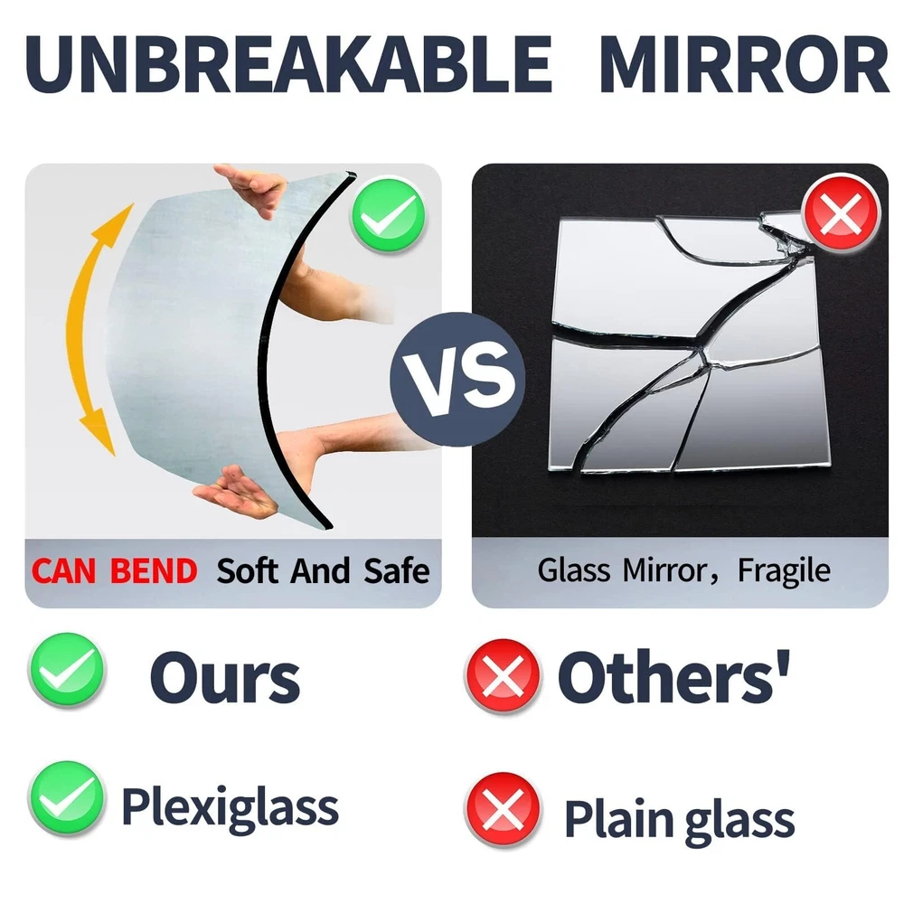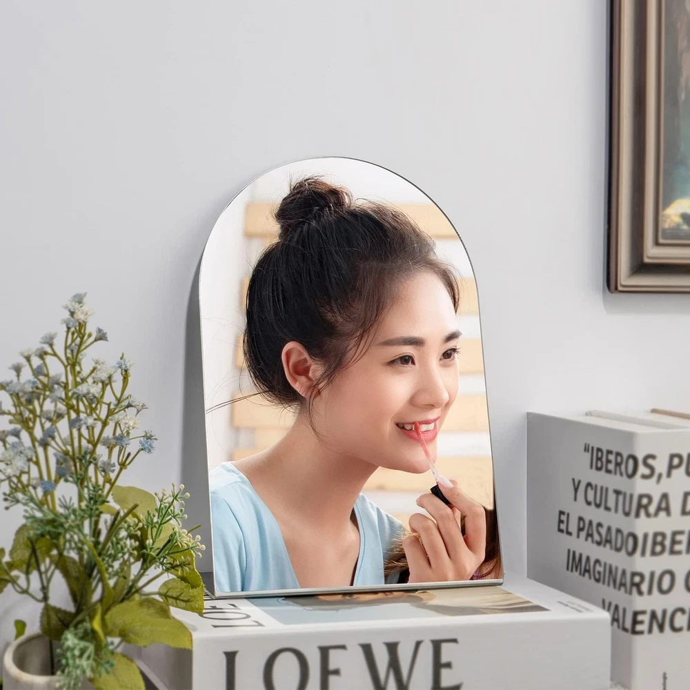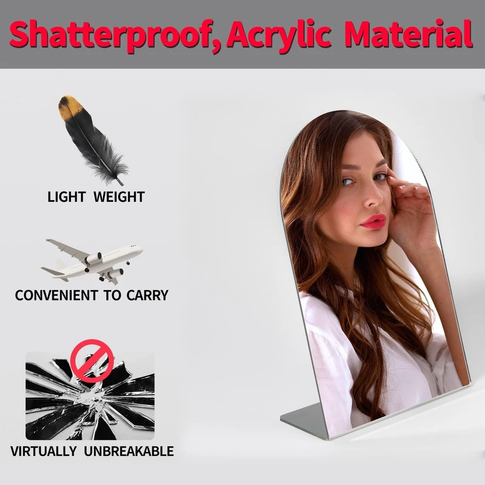 Table Mirror for Desk Vanity Mirror, Makeup Organizer Desk Mirror Shatterproof Makeup Mirror Travel Mirror, Portable Countertop Mirror Bathroom Shaving Vanity Mirror for Counter, Dorm, Bedroom Product Details Size: Table mirror,10" x 7" Brand: UNBREAKABL MIRO MPN: Shatterproof Mirror UPC: Does not apply EAN: Does not apply Brand: UNBREAKABL MIRO Room Type: Dressing Room, Bedroom, Living Room, Home Office, Dining Room Shape: Rectangular Product Dimensions: 9.6"L x 6.6"W Frame Material: Plexiglass Brand: UNBREAKABL MIRO Room Type: Dressing Room, Bedroom, Living Room, Home Office, Dining Room Shape: Rectangular Product Dimensions: 9.6"L x 6.6"W Frame Material: Plexiglass Style: Art Deco Mounting Type: Dresser Mount Finish Type: Polished Surface Recommendation: Plastic Special Feature: Unbreakable mirror, Very safe, not afraid of falling, Shatterproof mirror, Lightweight and easy to carry, HD Color: Silver Theme: Travel Specific Uses For Product: Dressing, Home Decor, Makeup, Camping, Workout Number of Pieces: 1 Number of Items: 1 Material: Acrylic Frame Type: Unframed Assembly Required: No Animal theme: Alpaca Frame Color: Silver Manufacturer: UNBREAKABL MIRO Item Weight: 4.2 ounces Country of Origin: China Item model number: Shatterproof Mirror Date First Available: January 25, 2024 (Quality materials): Desk mirror for desk made of plexiglass, It can be bent appropriately, Made of high quality acrylic plexiglass material, Makeup mirror not a real glass mirror, very safe, your kids and pets can play safely,It is a good room decor for teen girls (Super Thick): Makeup organizer mirror thickness: 0.12", about 9.6"L x 6.6"W, enough to clearly observe every detail of your upper body, vanity accessories definition is very high, the image is clear and undistorted, This size is perfect for makeup tables, dressers, computer desks and more! (Multi-site use): Tabletop mirror is suitable for placing on anywhere desktop, such as bedroom, bathroom, dorm, office. For makeup, skin care, shaving, Cosmetic tables, dressers, computer tables, etc (Multifunctional mirror): Makeup travel mirror is easy to carry and does not occupy space. It can be used as a multifunctional shatterproof safety mirror for travel, camping, makeup, shaving and shower. (Note): Before the first use, tear off a protective film on the front of the mirror (if the protective film is not torn off, the mirror surface will be blurred). Only clean the mirror with a soft cloth and warm water,Perfect professional make up mirror, making this the best gift for family and friends. I'm sure you and your friends will love it! Table Mirror for Desk Vanity Mirror Makeup Organizer Mirror Unbreakable Makeup Mirror Travel Mirror, Portable Countertop Mirror Bathroom Shaving Make Up Mirror for Counter, Bathroom, Dorm, Bedroom