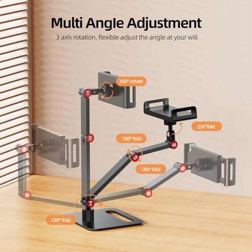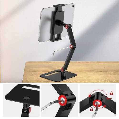 Return Policy Fast Delivery Trusted seller Tablet Stand for Desk, Adjustable 360° Swivel Bracket, 180° Tiltable Clamp, Adjustable Long Arm Foldable Tablet Holder with for 4.7-17.3'' iPhone/iPad/Tablet/Portable Monitor, Aluminum Alloy Product Description Universal Compatibility: This desktop tablet stand fits screens from 4.7" to 17.3", accommodating smartphones, e-readers, large tablets, and portable monitors with ease, ensuring versatile use Premium Stability: Made from durable aluminum alloy, this portable monitor stand with a maximum load-bearing capacity of 3kg , ensures your device remains securely in place without wobbling or slipping; Adjust to a stable angle for worry-free use Adjustable Design & Versatility: Featuring two adjustable long arms and a 360-degree rotation capability, our tablet stand offers unparalleled flexibility; Whether you're watching videos, reading e-books, or video conferencing, you can easily customize the angle and height to suit your preferences, enhancing your viewing experience in any scenario Rich Use Scenarios: From the home office to the kitchen to the bedroom, this tablet stand is designed to adapt to various use cases; Whether you're cooking up a storm while following a recipe, attending virtual meetings while working, or relaxing with hands-free entertainment, this stand provides a stable and convenient solution for all your needs Space-Saving & Easy Installation: Say goodbye to cluttered surfaces and tangled cords! Our foldable tablet stand features a widened base for enhanced stability while taking up minimal space on your desk or countertop; Plus, the hassle-free installation process ensures you can set it up in seconds, allowing you to enjoy its benefits without any delay Shipping Returns Payment Shipping Shipping is FREE to all addresses other than APO/PO boxes in the lower 48 states. All our stock ships from US-based warehouses. Shipped via USPS or UPS (depending on location and package weight) Unless stated otherwise, all orders will ship within 24-72 hours of your payment being processed. Check our feedback to see the great reviews of FAST shipping we offer. Returns Seller does not accept returns Payment We currently accept payment via eBay managed payments only. Once payment is cleared, we will dispatch your shipment within 1-3 business days. Please refer to the "Shipping" tab for more information regarding shipping speed to your destination.