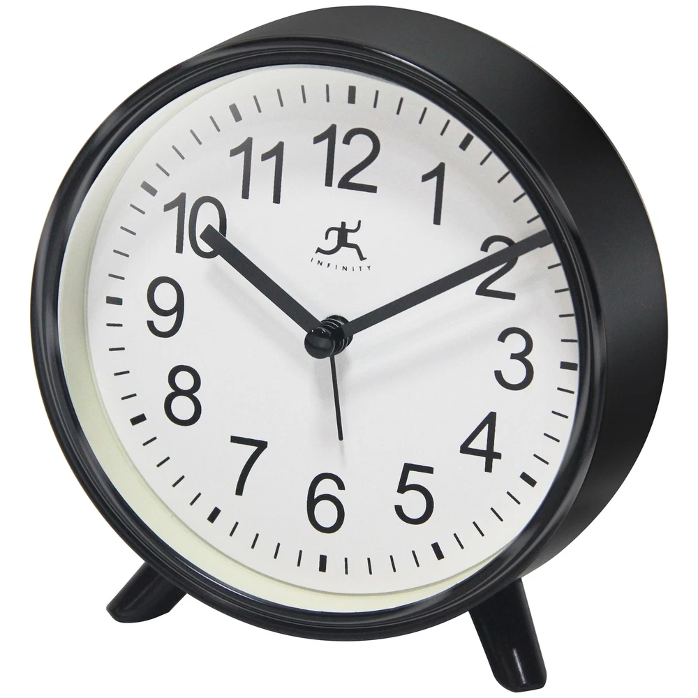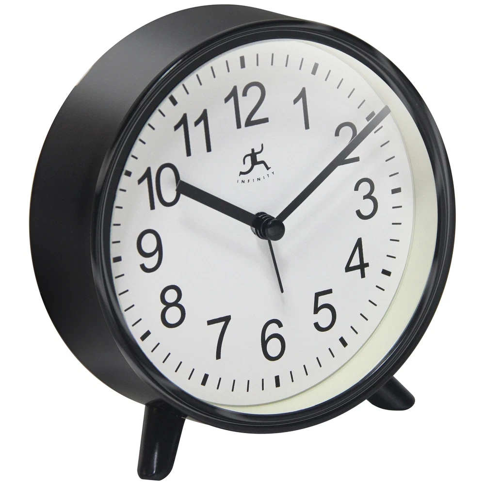 The Tabletop Alarm Clock is a simple yet striking piece that provides the perfect accent to any room in your home. This tabletop alarm clock features on a durable molded plastic frame. The Tabletop Alarm Clock also features metal hands and easy-to-read Arabic numerals on a white face. With its easy-to-use alarm with a loud ringing bell, it can clearly be heard by anyone. At 5.75 inches, this attractive alarm clock can be placed on your mantel, by the bed, coffee or end table, or anywhere you need a splash of color.Features: 5.75 in Round Alarm Clock for Indoor UseQuartz Movement for Accurate Time KeepingGlass Cover over a White FaceUses 1 AA Battery (Not Included)5.75 in H x 5.5 in W x 1.75 in D Free Shipping Over $49.99* Details Tabletop Alarm Clock - 5.75 in. Product Description: The Tabletop Alarm Clock is a simple yet striking piece that provides the perfect accent to any room in your home. This tabletop alarm clock features on a durable molded plastic frame. The Tabletop Alarm Clock also features metal hands and easy-to-read Arabic numerals on a white face. With its easy-to-use alarm with a loud ringing bell, it can clearly be heard by anyone. At 5.75 inches, this attractive alarm clock can be placed on your mantel, by the bed, coffee or end table, or anywhere you need a splash of color. Features: 5.75 in Round Alarm Clock for Indoor Use Quartz Movement for Accurate Time Keeping Glass Cover over a White Face Uses 1 AA Battery (Not Included) 5.75 in H x 5.5 in W x 1.75 in D