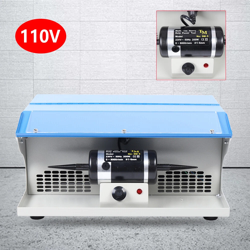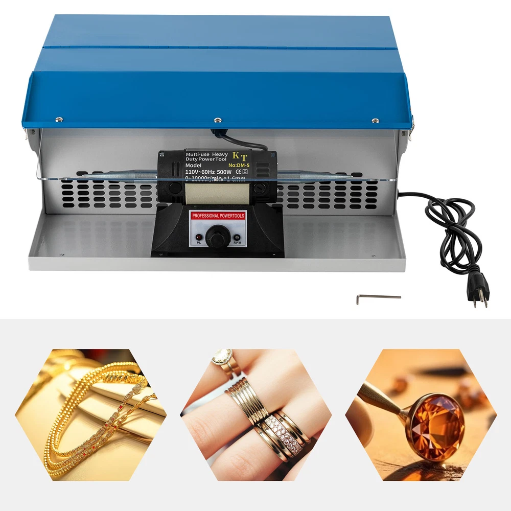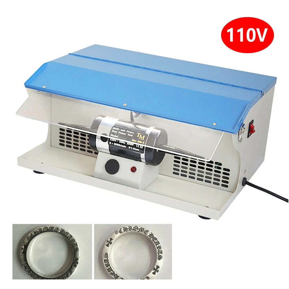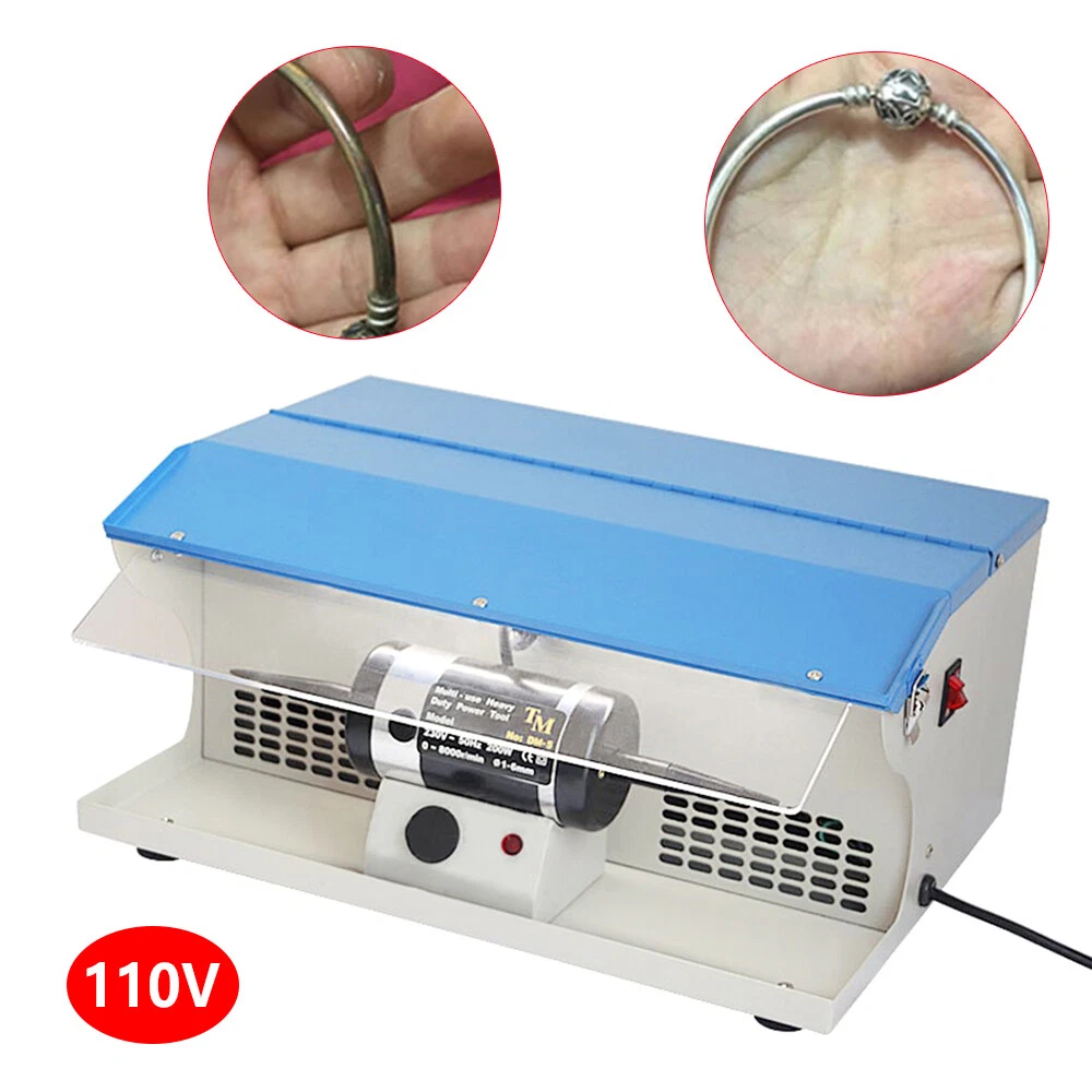 Description Jewelry tends to lose its luster, darken, and oxidize after being worn for a long time. The buffing machine can return your jewelry to a new look. Made of high-quality iron, it is strong and durable. The pure copper motor ensures high speed (10000rpm) and low noise (Max 50dB), providing you with excellent working performance. Details Heat Dissipation Holes: There are heat dissipation holes on the product, which can dissipate heat in time and prolong the service life of this product. Footpads: It is equipped with four footpads at the bottom, which are abrasion-resistant, non-slip, and can prevent the desktop from being scratched. Meanwhile, they can ensure the stable placement of this product. Indicator Light: When the product is turned on, the indicator light will be on, which can help you better understand the use status of the product. Tapered Spindles: It comes with tapered spindles for holding buffs and brushes up to 4"" in diameter. Lighting Tube: The lighting tube with high bright can provide you with clear signt without damaging your eyes. Safety Locks: The safety locks are provided on both sides of the machine to avoid accidental contact when not in use.