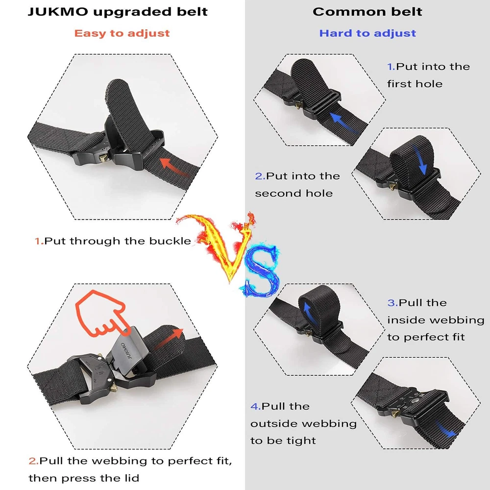 is a brand that is extremely detail-oriented. In order to ensure that our products meet the expectations of every customer, every detail of product quality is strictly checked by our staffs. We have only one goal that is to make every customer feel that they make every penny count and that the product is worth owning, which is our responsibility. QUICK RELEASE BUCKLE UPGRADED VERSION:The crafted heavy-duty buckle, made of aluminium alloy, has very strong load-bearing capacity, which can meet your different wearing requirements. The upgraded part is that it is more convenient to adjust the length to perfect fit more than you can imagine. If you want to understand more intuitively how to be more convenient, you can watch our short tactical video HIGH QULITY STRETCH NYLON:We intent to make the strap be stretch. The strap is made by special stretch material which is more solid than regular belt. More than that, it is very sturdy as well as stretch, which make your waist be more comfortable as well as stay tight, when you take large range of activities. Anyone who do physical activities for a long period of hours will get a great use out of the tactical belt FOR SPECIAL YOU: Our solid belt suits for military, SWAT, fire fighters, work, sport and other tactical users. Anyone who need to take any activity will be in harmony with the belt AS A PRESENT: Our elaborate belt is enclosed in an elegant gift box for you giving whoever you love, or yourself SHOPPING GUARANTEE:If you meet any problems after purchasing the belt, please don't hesitate to contact us. We promise to provide you 100% satisfying guarantee