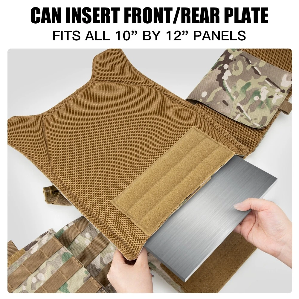 【HIGH QUALITY】 The weight vest composed of 900D fabric, high-tensile strength thread, and webbing is equipped with a map pouch and three modular heavy-duty mag panels.It comes with two stable side straps as well as adjustable padded shoulder straps. The weight vests are fully padded with breathable 3D mesh, which are comfortable and keep you cool by allowing air circulation. 【FUNCTIONAL-RAPID OPEN】 This weight vest is built with rapid-open connectors on the shoulders and waist that make it easy to quickly put it on and take it off. The unique cummerbund features integrated pockets that can even be accessed through the side for added protection in case it's required. The ideal tool for training, hiking, camping, extreme challenges, and fans alike. 【MOLLE SYSTEM】 Throughout the weight vest, there are MOLLE webbing attachment points and optional personalization options. Map pockets with snap-and-hook closures keep important documents within reach, and pockets offer easy access to soft pocket as needed. Shock-cords and cord locks can be hidden in the back of the vest, not only can the waist and size be adjusted, it can also enhance the feeling of comfort. 【 PERFECT SIZE 】 Adjustable shoulder strap and cummerbund fit most people from size S to XXXL size: maximum waist 52 inches, minimum waist 32 inches. Retro kit integrates seamlessly with carriers that use hook-and-loop flap systems to fit different waist sizes. In addition, waist belts and shoulder straps can also achieve the effect you want. 【USE SCENES】 Target for tactical training. Packaging: 1x Tactical Vest , other items not included.