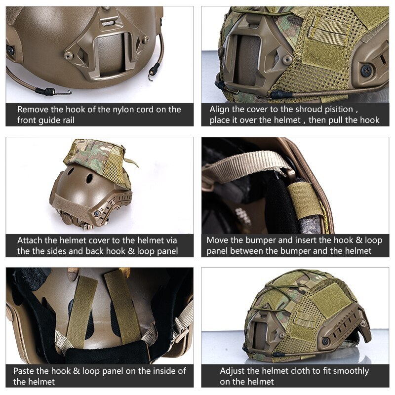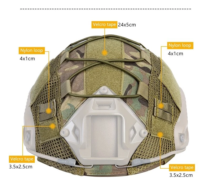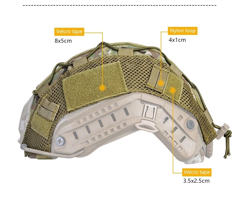 Model: HC3802 Condition: 100% brand new Color: MultiCam,Multicam Black Material: High quality nylon Weight: 70g Packege:Helmet cover X1(Patches and helmet are not included) Size:one size for S/M Fast helmet Made of 500D Cordura nylon for excellent quality and extra durability MultiCam pattern for that classic style and camouflage in the field Upgraded MOLLE & hook-and-loop system with cross-bungee cords Simple installation and easy removal without having to take off NVG Loop panel in the center for morale patches Attached to the helmet by hook&loop Designed for FAST Helmet, ONLY for size S/M, NOT for L/XL or bigger size helmet