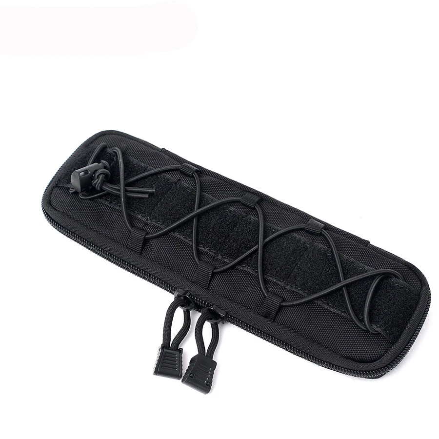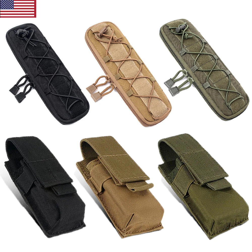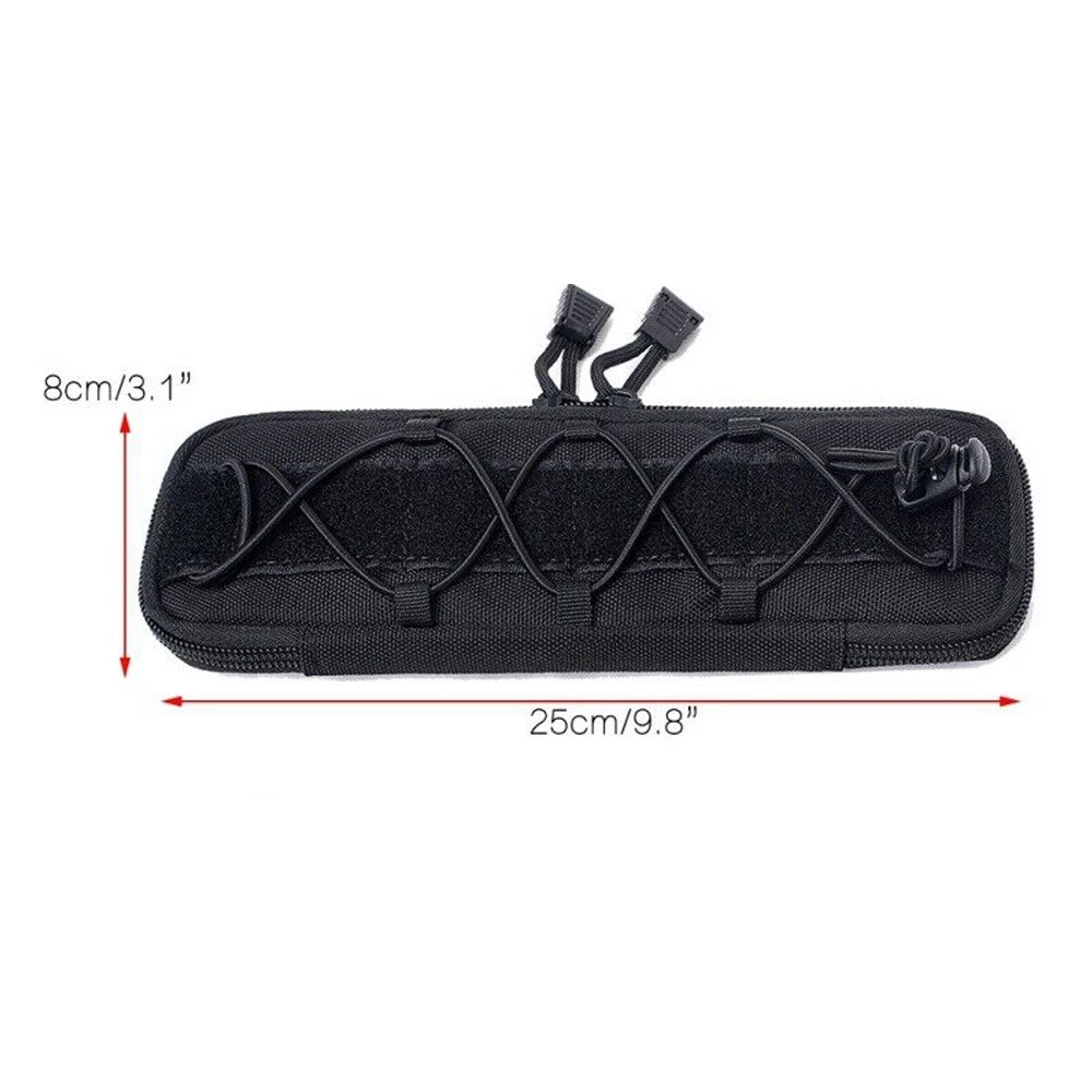 Product Description: Features: 1. Made of high-quality synthetic fibers, which is wear-resistant and durable, and long service life. 2. Easy to carry, for using molle attachments, small molle pouch, tactical belt pouch, molle pouches tactical. 3. This is a compact design of the package, the shape of the bag is small and delicate, portable and lightweight. 4. The belt pouch has the adjustable elastic band and nylon clasp design which can fix the item firmly. 5. High quality and smooth zipper design ensures that things will not fall and easier to close and open bags. 6. The vest pouch can accommodate the tools and objects commonly used in outdoor travel, such as cutter, compasses, flashlight and other EDC tools. 7. The bag design with Molle system which can be directly hung through the waist belt on the waist, and can also be hung on the backpack, which is convenient to carry. Specification: Material: Synthetic fibers & 1000D nylon Weight: 0.11kg(large) / 0.07kg(small) Size: 25 x 8 x 2.5 cm Suitable for Camping,Hiking,Hunting,Outdoor Sports Package Includes: 1 x Tactical Molle Flashlight Knife Holster (Note: The flashlight / tactical knife is not included.)