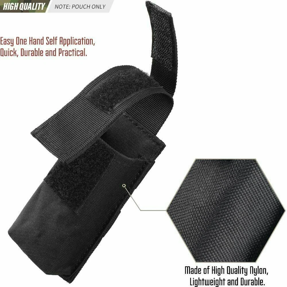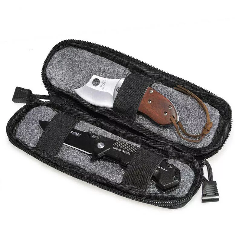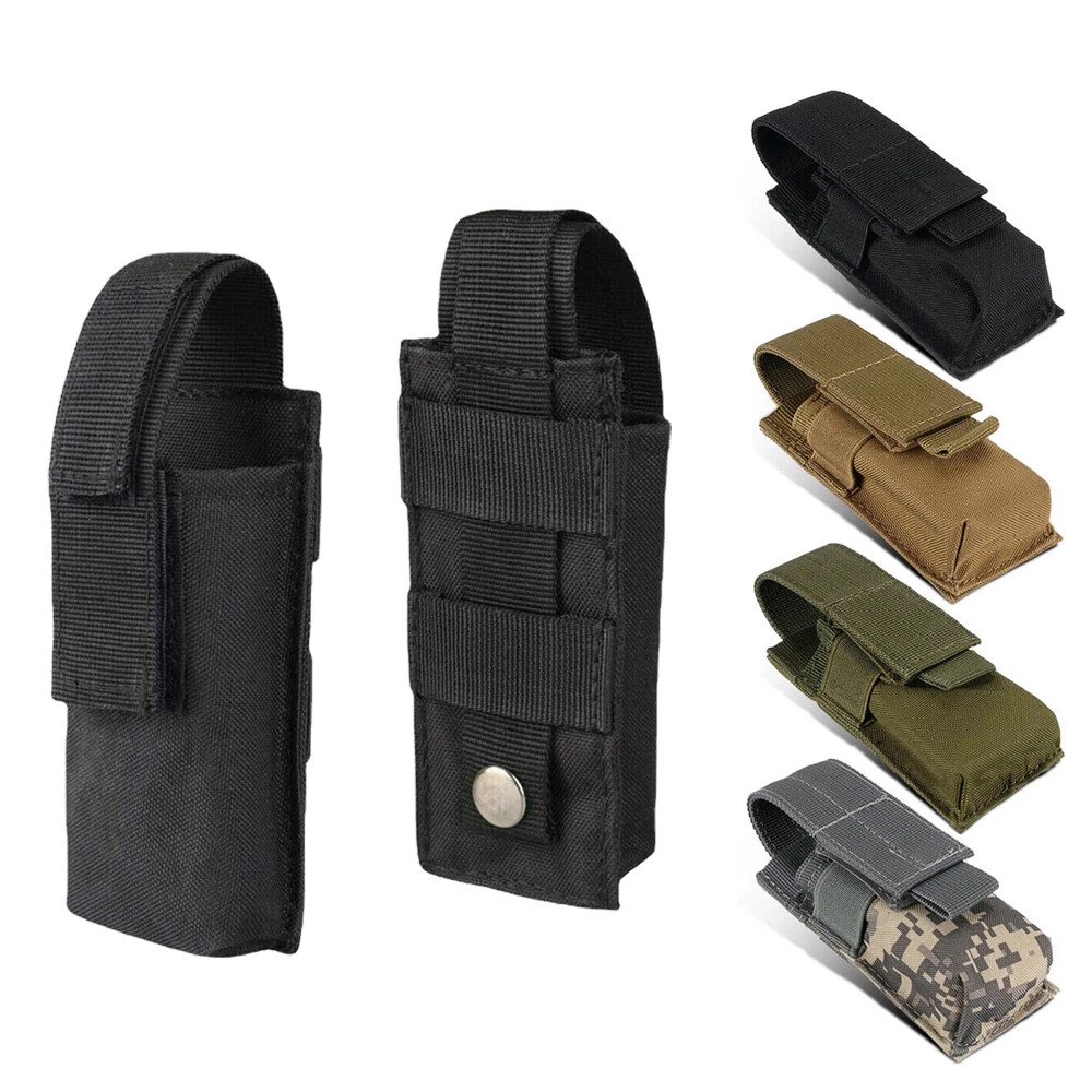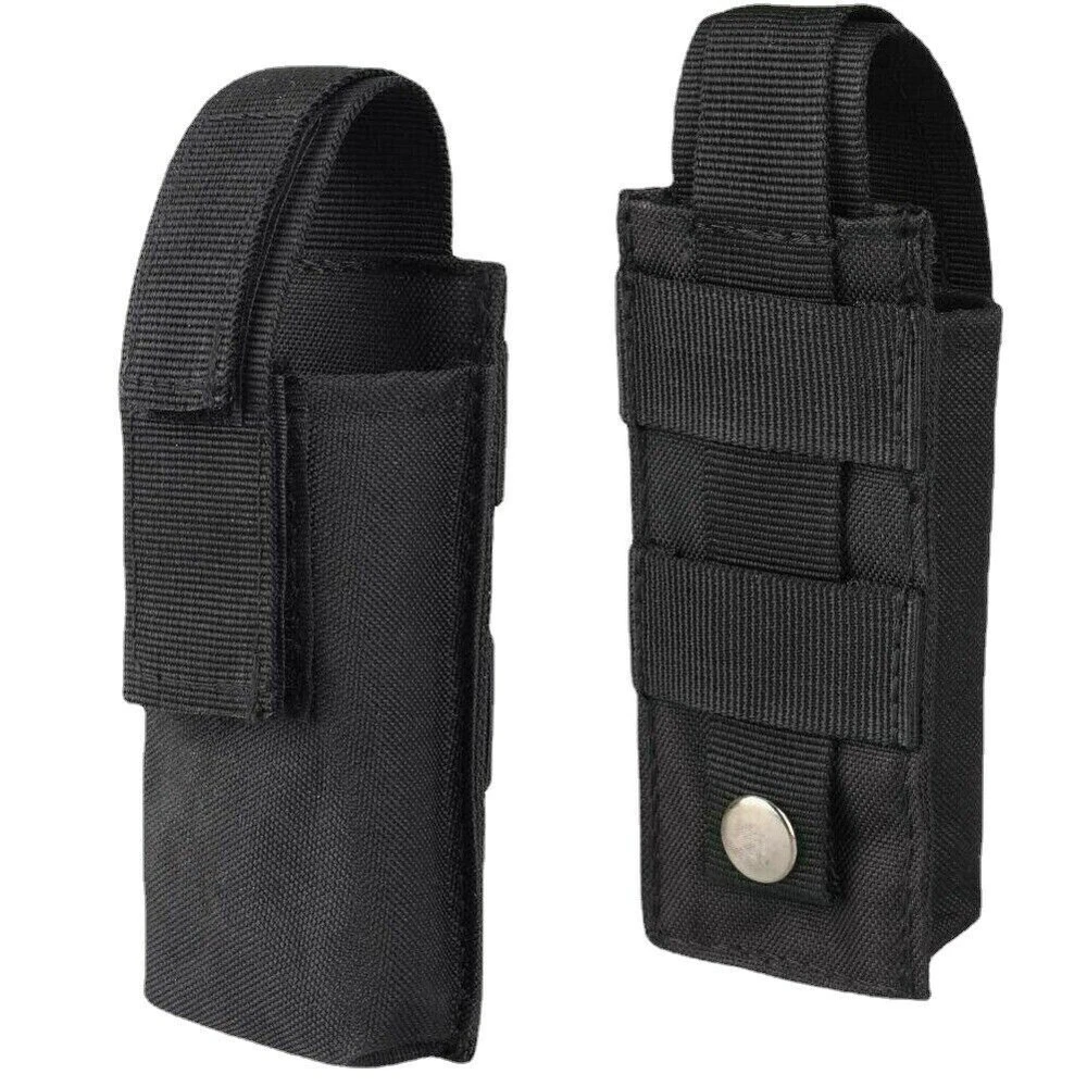Product Description: Features: 1. Made of high-quality synthetic fibers, which is wear-resistant and durable, and long service life. 2. Easy to carry, for using molle attachments, small molle pouch, tactical belt pouch, molle pouches tactical. 3. This is a compact design of the package, the shape of the bag is small and delicate, portable and lightweight. 4. The belt pouch has the adjustable elastic band and nylon clasp design which can fix the item firmly. 5. High quality and smooth zipper design ensures that things will not fall and easier to close and open bags. 6. The vest pouch can accommodate the tools and objects commonly used in outdoor travel, such as cutter, compasses, flashlight and other EDC tools. 7. The bag design with Molle system which can be directly hung through the waist belt on the waist, and can also be hung on the backpack, which is convenient to carry. Specification: Material: Synthetic fibers & 1000D nylon Weight: 0.11kg(large) / 0.07kg(small) Size: 25 x 8 x 2.5 cm Suitable for Camping,Hiking,Hunting,Outdoor Sports Package Includes: 1 x Tactical Molle Flashlight Knife Holster (Note: The flashlight / tactical knife is not included.)