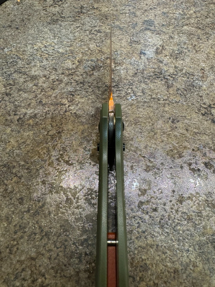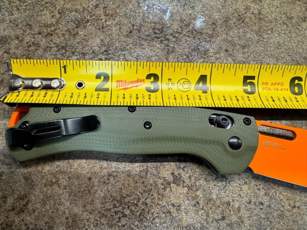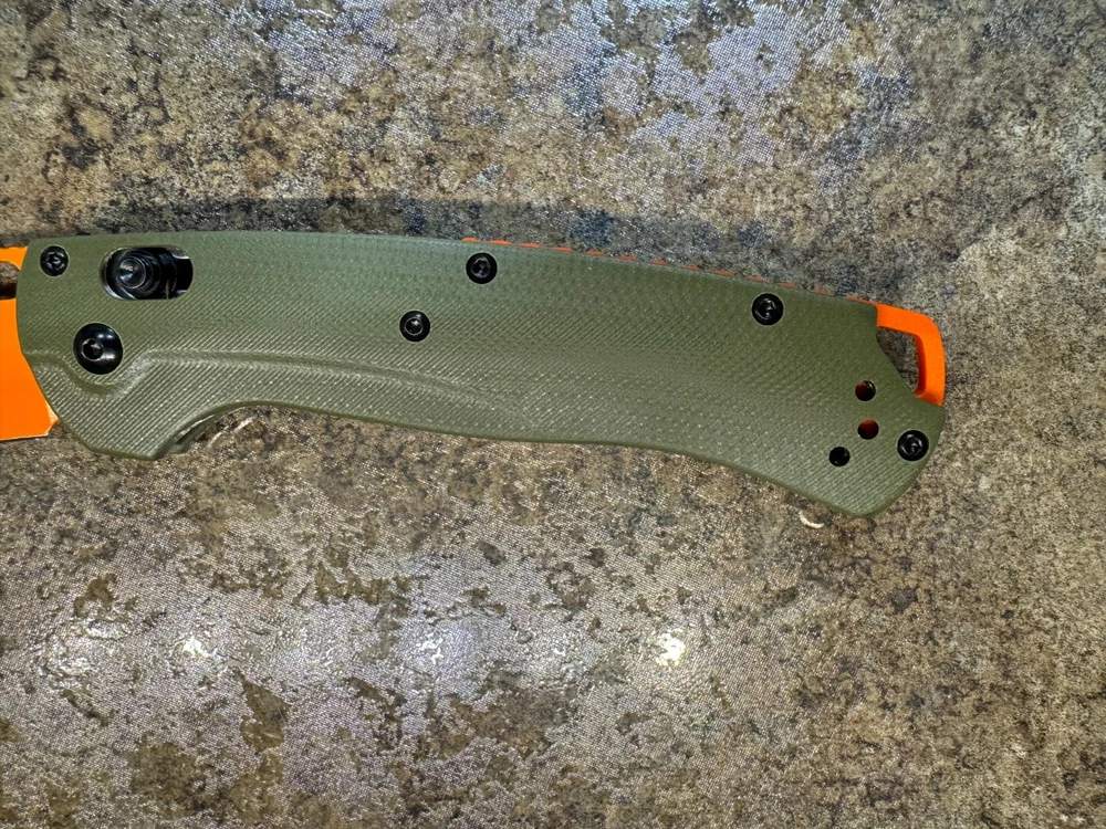 Tactical Orange Blade Folding Knife with Green G10 Handle – 3.25" Blade, 8.0" Overall Here’s one knife that doesn’t mess around. With an eye-catching orange blade and a rugged green G10 handle, this folder is ready for action and easy to spot in any gear bag. It’s compact but tough, featuring a solid black pocket clip and a thumb stud for smooth one-handed opening. Measuring in at a 3.25 inch blade and 8.0 inches overall, it’s the perfect balance of size and utility. This blade’s sharp and ready for any task, from cutting rope to prepping camp. So if you want a no-nonsense knife that gets the job done and turns heads, here it is. Remember, stay sharp, stay ready, shoot straight!