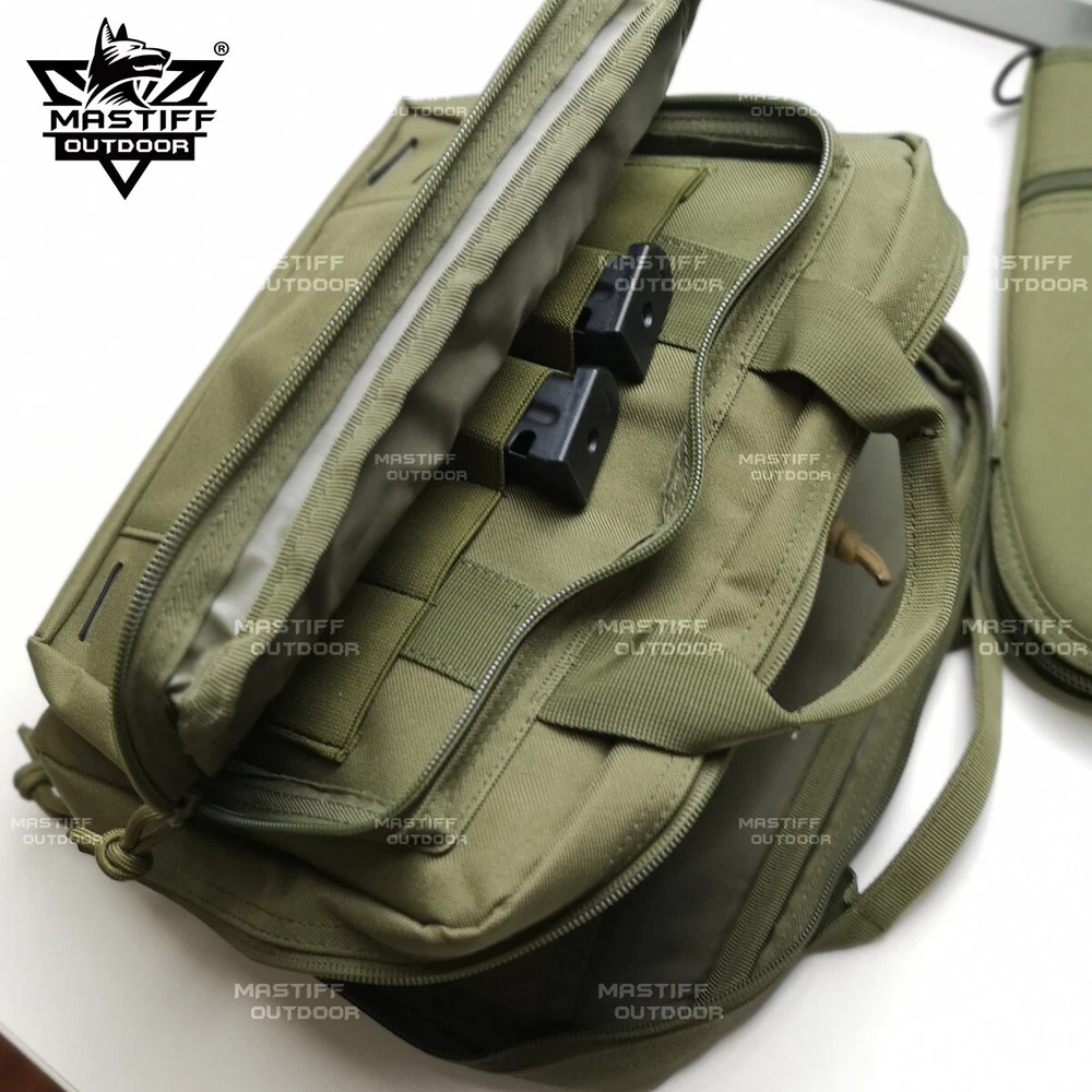 Tactical Pistol Case Handgun Bag Hunting Shooting Range Magazine Pouch MAS-88080-BK This “Mastiff Outdoor” tactical multi-purpose go bag is great way to carrying your pistols, ammunition, laptop, or any related accessories. Made with water-resistant 1000D Nylon and strong zippers to help keep your stuff secure, this go bag is made for heavy-duty usage. The front pocket has 5 magazine clip holders that allows for maximum space when carrying your gear. Keep your items safe and away from the harsh outdoor elements with this go-bag. [COLORS] Black, Green, Khaki, Grey [SIZE] 14”L x 10”W x 4”H [STURDY] Made with water-resistant 1000D Nylon [CAPACIOUS] Front large exterior pocket with 5 magazine clip holders, to help carry ammunition and accessories [SECURE] Heavy -duty zippers to protect all the equipment [SUPERIOR] Reinforced stitching helps keep your stuff secure. [WARRANTY] 60 Days Warranty that covers material and workmanship under normal use and service. *The gun and magazine are not included* *All firearms must be unloaded before being placed in this case. It is unlawful to store or leave a firearm in any place within reach or easy access of a minor.* PAYMENT INFORMATION I Return to the top I Payment Methods We accept PayPal, Visa, MasterCard, and Discover. Please keep in mind that eChecks through PayPal to be cleared by your bank before we can begin processing your order. When paying with a credit card, we can only ship to the billing address. Only a credit card issued by a US-bank that supports billing address verification service can be processed by our credit card terminal. We do not accept credit card payments from international customers. PLEASE DO NOT SEND CASH. California residents please add 8.75 % Sales Tax. Payment must be received within 7 days after notification of total payment due. Purchasing multiple items? You can combine all eligible items into 1 invoice and make a single payment for all items, and the shipping rate will be adjusted during checkout. Once checkout has been completed, you will not be able to add any other items to the completed order. All other items will need to be placed with a new order. All payments are expected within 7 days. Unpaid auction wins will be forfeited and will be reported to eBay. This is a binding contract. SHIPPING & HANDLING I Return to the top I All items are normally shipped within 2 business days after the payment is received. Please note that we do not ship on weekends, or national holidays. If you make a payment by eCheck, it may take longer since it has to clear your bank first before the order is processed. We may ship your package using a different shipping carrier at our discretion with the same shipping speed. For example, if you select UPS Ground, we may ship your order by FedEx Ground. If you have a PO Box as a shipping address, please be sure to select a shipping method offered by US Postal Service, as UPS/FedEx do not ship to a PO Box. Otherwise, your order may be put on hold until we receive a physical address from you. Once you complete the checkout, you will not be able change or add any items to the order. We will only ship your order to the address that we received from eBay. We will not change the shipping address for any reason. When will my order be processed? The cutoff for all orders is 8 AM Pacific Time every weekday. Orders received after 8 AM Monday-Thursday are processed on the following day, and orders received after 8 AM Friday and over the weekend are processed Monday. Any e-mail correspondence after 5 PM Friday will not be answered until at least the following Monday. Upon shipment a tracking number will be sent to the email address registered to your eBay account (not through your eBay messaging system). Please check your spam folders to make sure that it was not inappropriately deleted and make sure your inbox is not full. How long will it take for my order to get to me after it ships? It depends on where you are located. All items are normally shipped within TWO business days after the payment is received. Once the order is shipped, please refer to the transit map below for FedEx delivery times from our location. Keep in mind that weekends and holidays do not count as a business day. Please note that we do not ship on weekends, or national holidays. Have questions? Feel free to contact us. Our office hour is Mon.-Fri. 9:30 am - 5:00 pm PST INTERNETIONAL CUSTOMERS I Return to the top I International buyers please use the shipping calculator to check the shipping & handling costs before you place an order. Import duties, taxes and customs charges are not included in the item price or shipping charges. These charges are the buyer’s responsibility. Please check with your country’s customs office to determine what these additional costs will be prior to bidding/buying. Many items we carry may be considered as weapons. Please check with the import laws in your country before placing an order, as the customs in your country may deny entry or confiscate of the package. In these cases, we can issue a refund of the item cost only if the package is returned to us. The original shipping costs are non-refundable. All international buyers outside of the United States must agree to make a payment through PayPal if you wish to purchase the item. Credit cards issued by a non-US bank are not accepted. Available International Shipping Methods USPS First Class International Cheapest method for packages less than 24 inches in length, NO TRACKING OPTION available , no delivery time commitment, can take as long as 2 months for delivery. USPS Priority Mail International Usually takes 2 to 3 weeks for delivery, tracking service available. FedEx International Economy Fastest method of shipment, usually takes up to 1 week for delivery depending on customs, tracking service available. (For this method of shipment, please select UPS Worldwide Expedited during checkout.) RETURN POLICY I Return to the top I All return