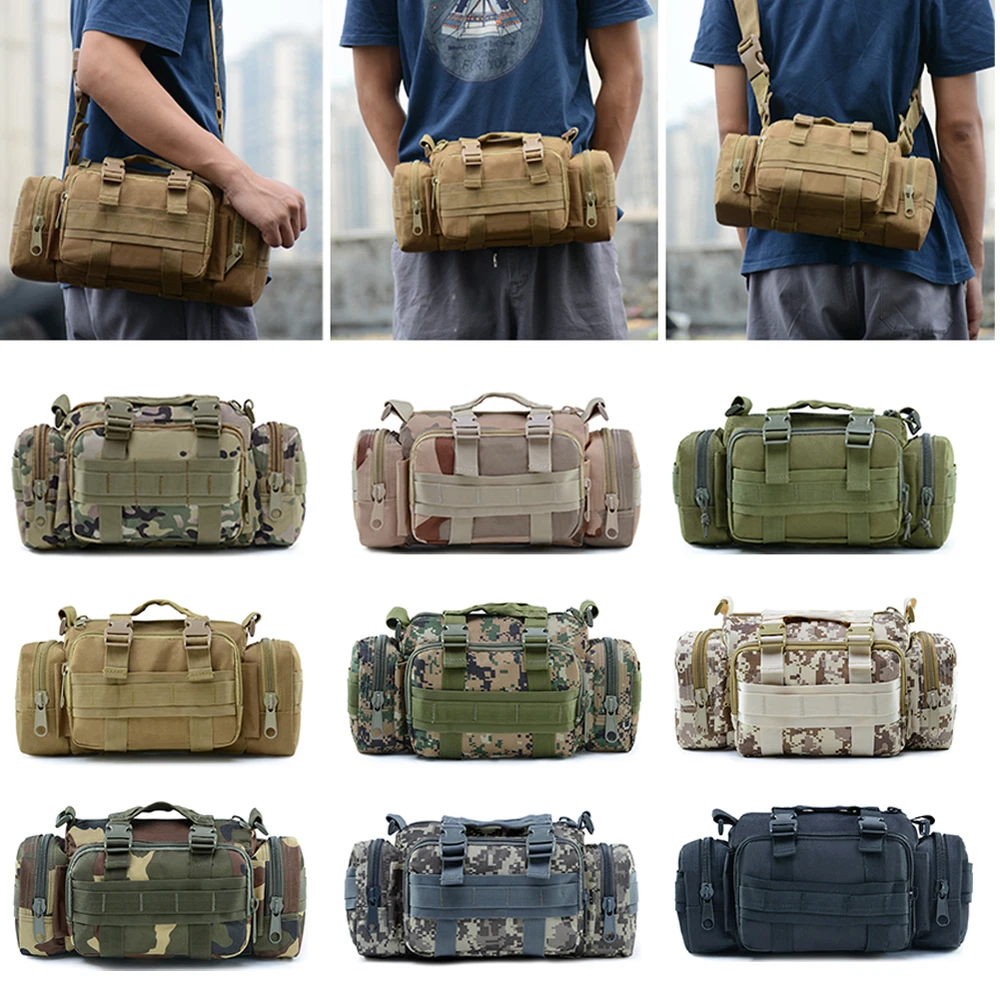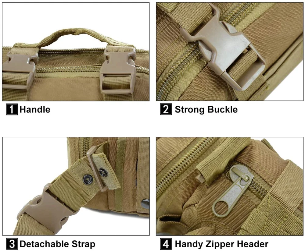 Product Description: Features: 1. Size: 13.8" x 7" x 5.5". Multi-purpose Bike Handlebar Bag - OUTDOORS multi-purpose handlebar bag with adjustable strap can also be used as bike top tube bag, shoulder bag, waist bag and messenger bag. Hang it on handlebar as sixth image shows please. Appropriate size fits for most people. 2. 900D Army Grade and Water Resistant Materials - Made of real 900x600D high-density military nylon oxford and inner PU water resistant layer, so this heavy-duty pack is scratch resistant, anti-abrasive, colorfast, rust resistant, and it is reinforced at all stress points. 3. Handy Construction Design - This EDC bag has one mian zippered pocket with inside mesh pocket which can hold a beer bottle or iPad mini; One front zippered pocket and two side zippered pockets for carrying little items or gadgets like keychain, small GPS device, medical supplies, small tools, etc. Can meet most of your daily outdoor storage needs. 4. Bag with MOLLE System - This expandable bag has MOLLE attachments on its back, and allow you to attach it to Duty Utility Belt, Admin Bag, backpacks, PALS Vest or any MOLLE compatible gears. It has some MOLLE webbing belts on front and two sides for loading extra small MOLLE pouches or hanging gadgets like pens, sunglasses, flashlight, interphone. 5. Suitable for Many Outdoor Activities - This portable handlebar bag has multiple pockets and can keeps your outdoor gears and gadgets organized and easy-reaching. Besides cycling and motorcycling, it is also suitable for your outdoor leisure, casual hanging out, hiking, trekking, hunting, fishing and other outdoor activities. Great gift for outdoor enthusiasts. Package Included: 1x Waist Bag Notice: 1. Please allow 2-3% error due to manual measurement. 2. The colors may have different as the difference display, please understand. Contact US: Your satisfaction is our highest priority. Please contact us if you have any questions or requests about our products or service. We are always glad to assist you and stand by our products.
