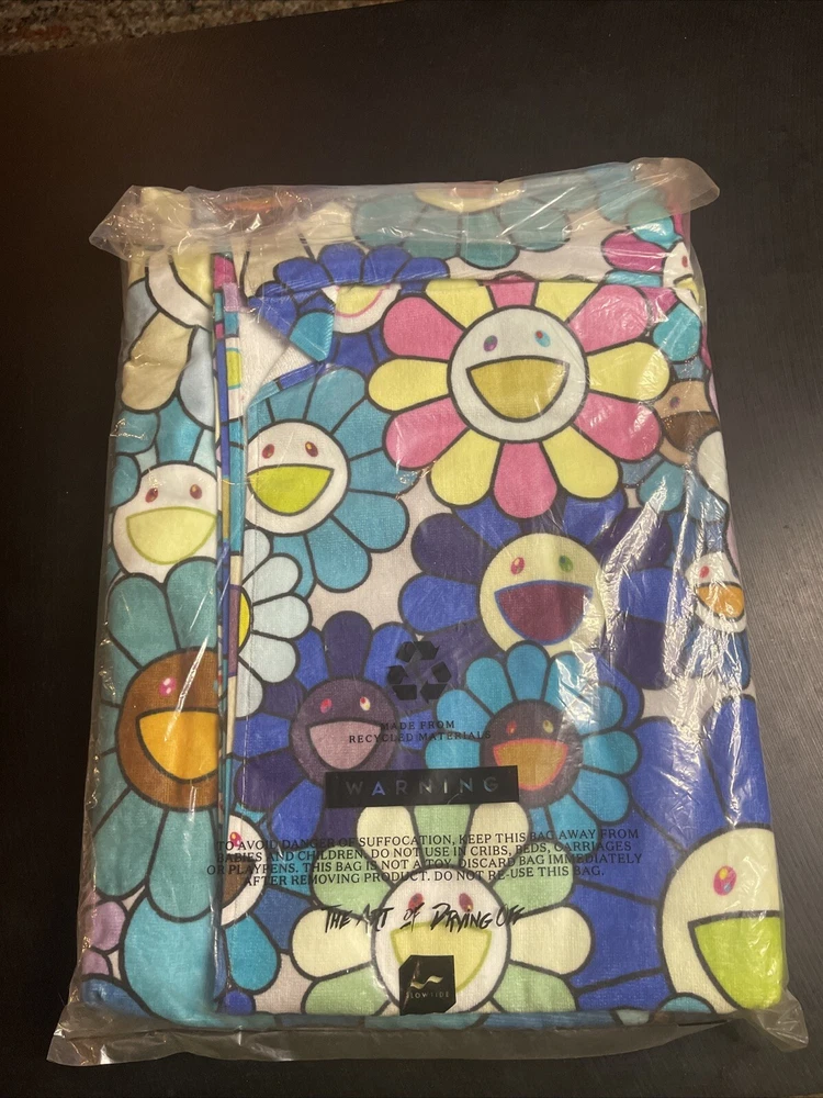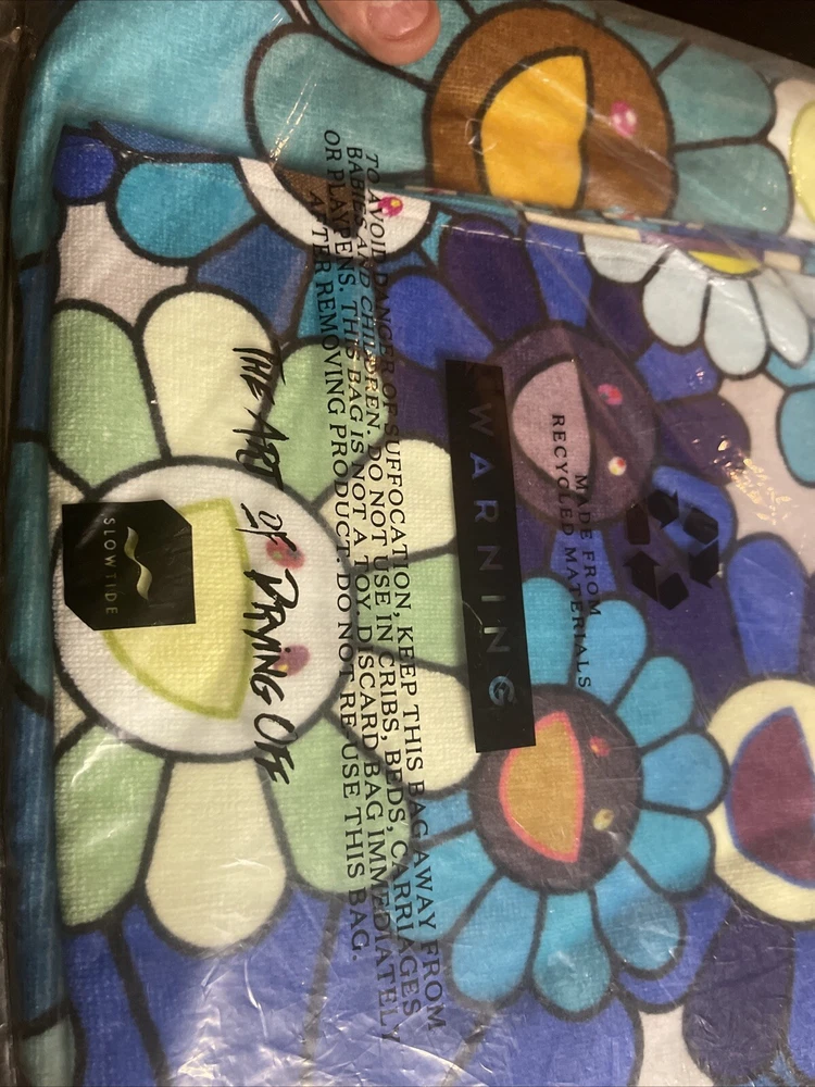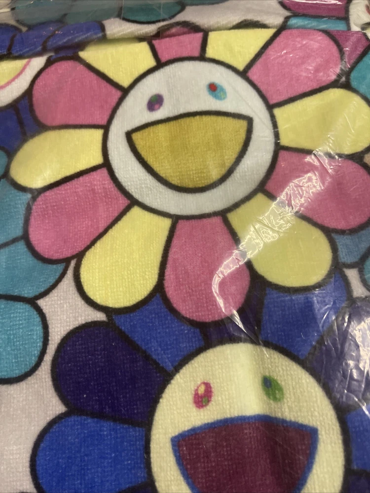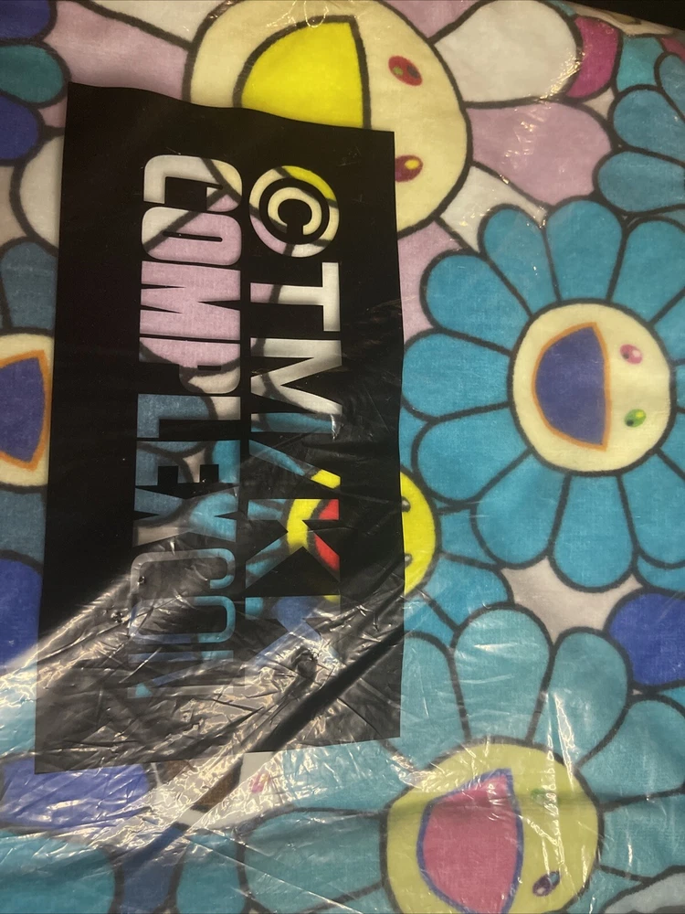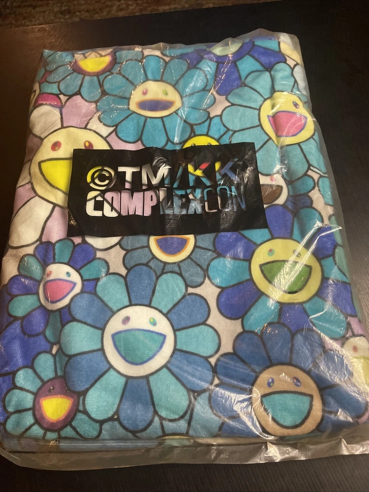 Brand new never opened blue flower print TM/KK COMPLEXCON beach towel still in its plastic bag.