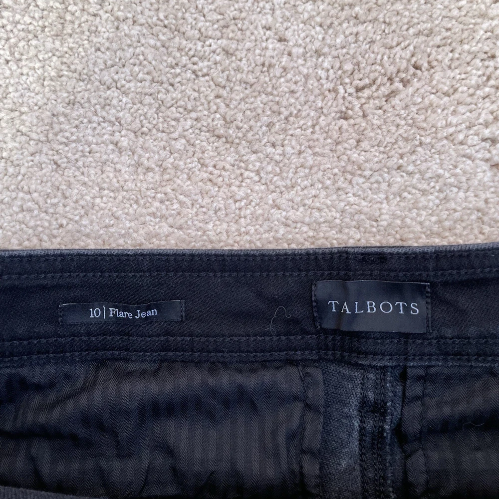 Talbots Flare Jean Womens 10 (Fit 32x30) Black Flare Retro Y2K Style Profile/Aesthetics: Retro Y2K Description/Specifics High Rise Dark Wash Flare Leg Stretch 5 pocket design with belt holes Zip-Fly with Button Closure Color/Fabric: Black Denim Materials: 93% Cotton, 6% Elasterell - P, 1% Spandex Washing Instructions: Machine Wash Cold Measurements : Please see photos for approximate measurements taken laying flat (in inches), be aware that tagged and actual measurements may differ on pre-owned clothes due to prior wash or wear so please compare measurements to clothes you already have to ensure proper fit! Tagged Size: 10 Actual approximate measurements (inches), see pictures Waist: 32 Inseam: 30 Condition: This item has no observed holes, tears or stains. Please see photos for details, color may vary due to lighting! All preowned items have been cleaned. Please reach out with questions!