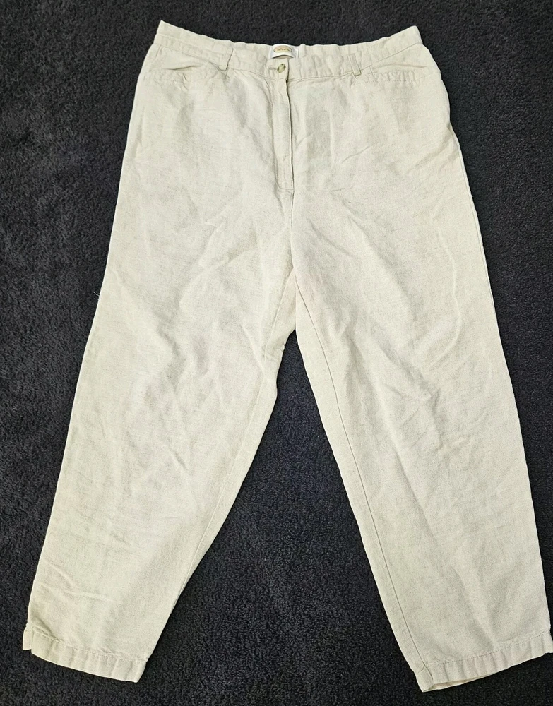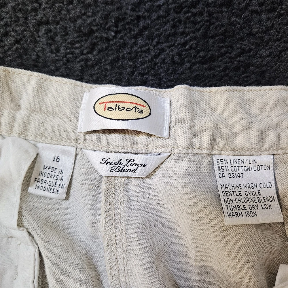 Talbots Pantalones 16 Irlandeses Mezcla de Lino Abuela Costera Ligero Cápsula Armario
