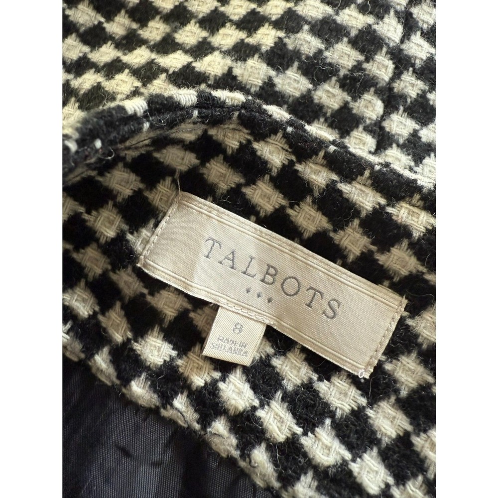 Talbots Size 8 Wool Tweed Plaid Black Cream Women Skirt Modern Stylish Cut NEW