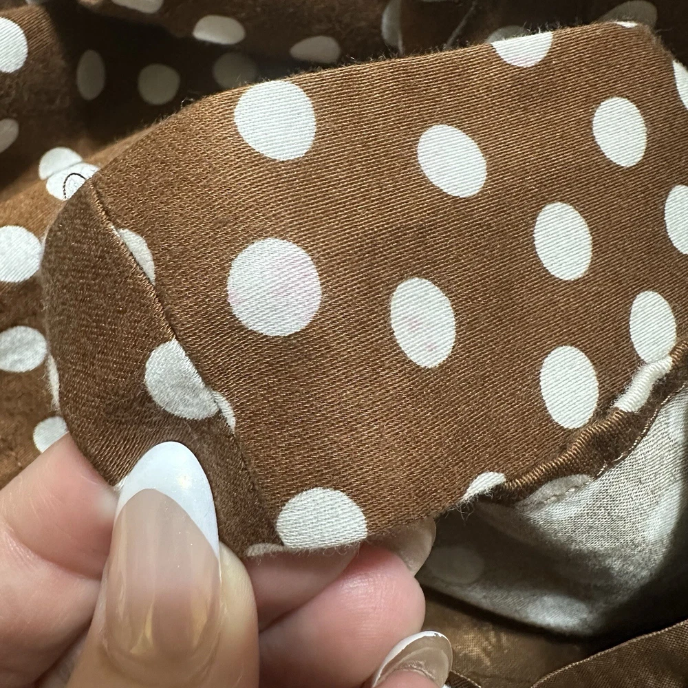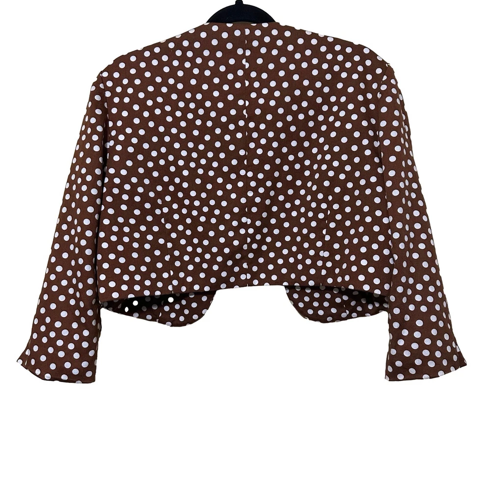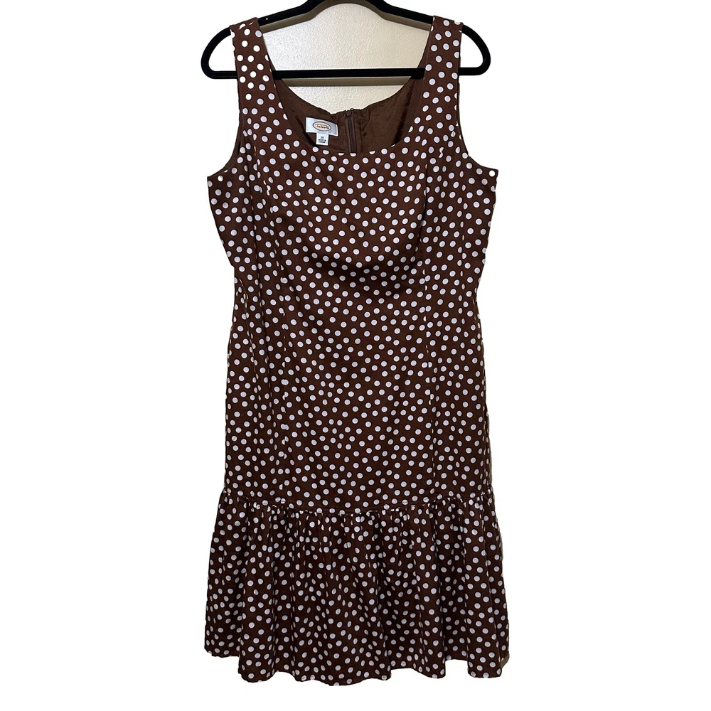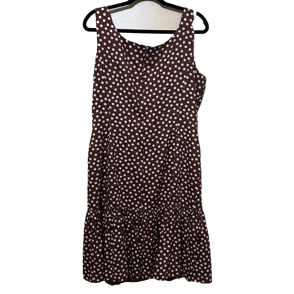 Talbots Women’s 16 Brown Polka Dot Peplum Dress Shrug Set 50s Pinup Retro Modest Good pre-owned condition, pale pink marks on one shoulder of dress. Approximate flat lay measurements: Dress length-41” Bust-19.5” Hip-18.5” Shrug length-17” Bust-18” Sleeve-18” This gorgeous Talbots dress is a must-have for any fashion-conscious woman. The brown polka dot pattern adds a touch of retro charm, while the 3/4 raglan sleeves and peplum detail give it a modern twist. The round neckline and zip closure make it easy to wear, and the knee-length fit and flare style is perfect for any occasion, from casual outings to formal events. Made from 100% cotton knit fabric, this dress is both comfortable and stylish. It comes in size 16 and is suitable for women of all ages. With its versatile style and high-quality construction, this Talbots dress is sure to become a favorite in your wardrobe. Whether you're dressing up for a wedding or holy communion, or keeping it casual for a party or cocktail event, this dress has got you covered. So why wait? Add this stunning piece to your collection today!