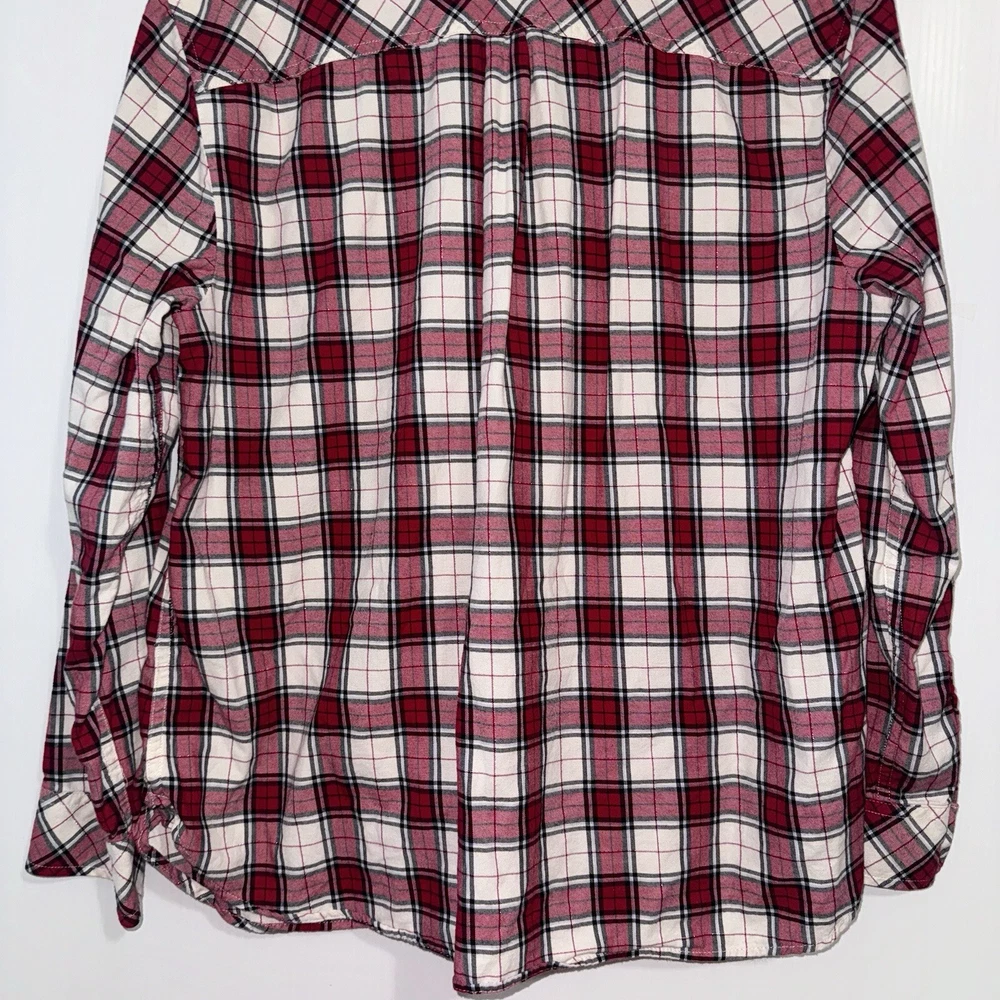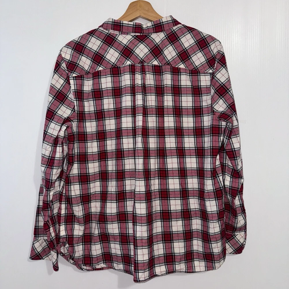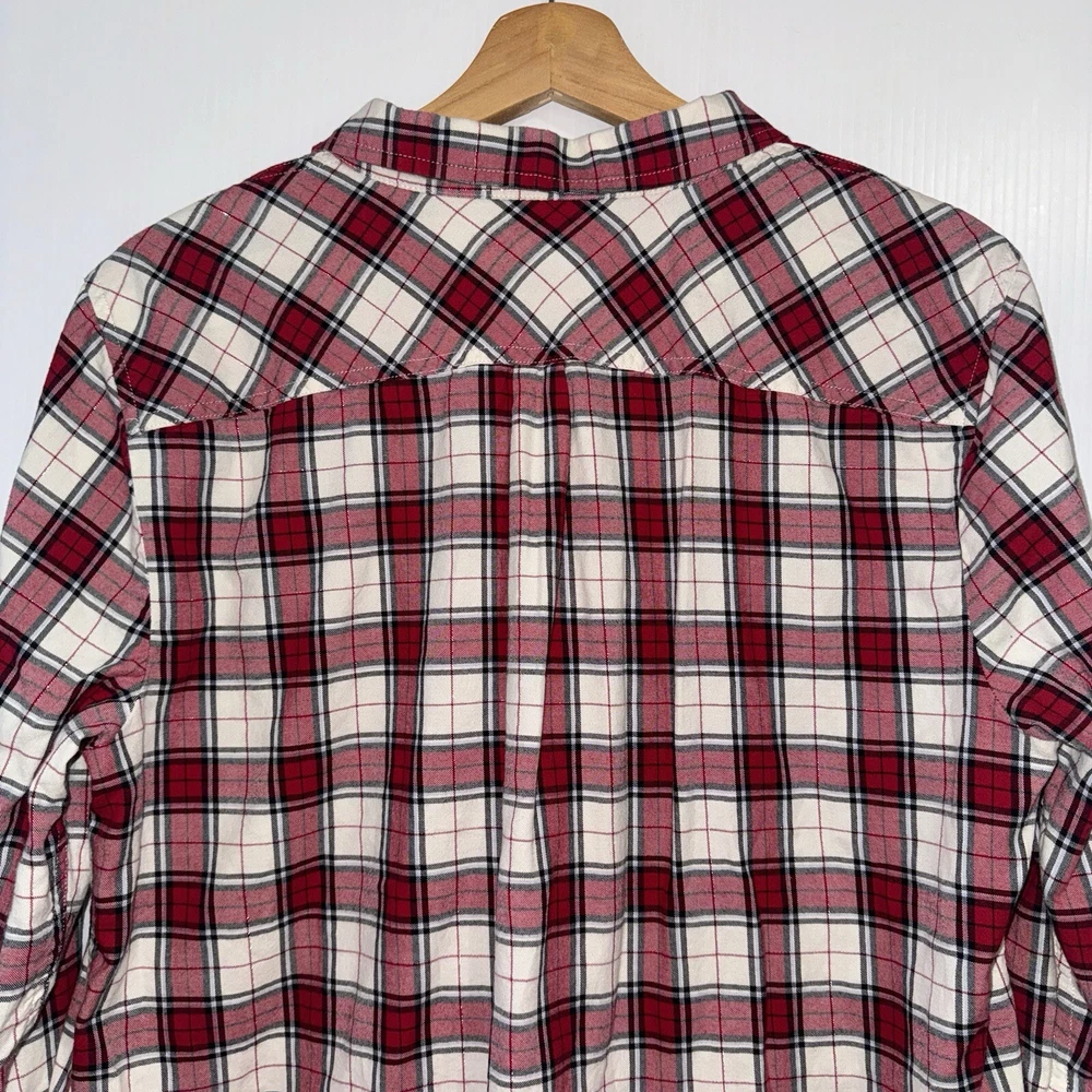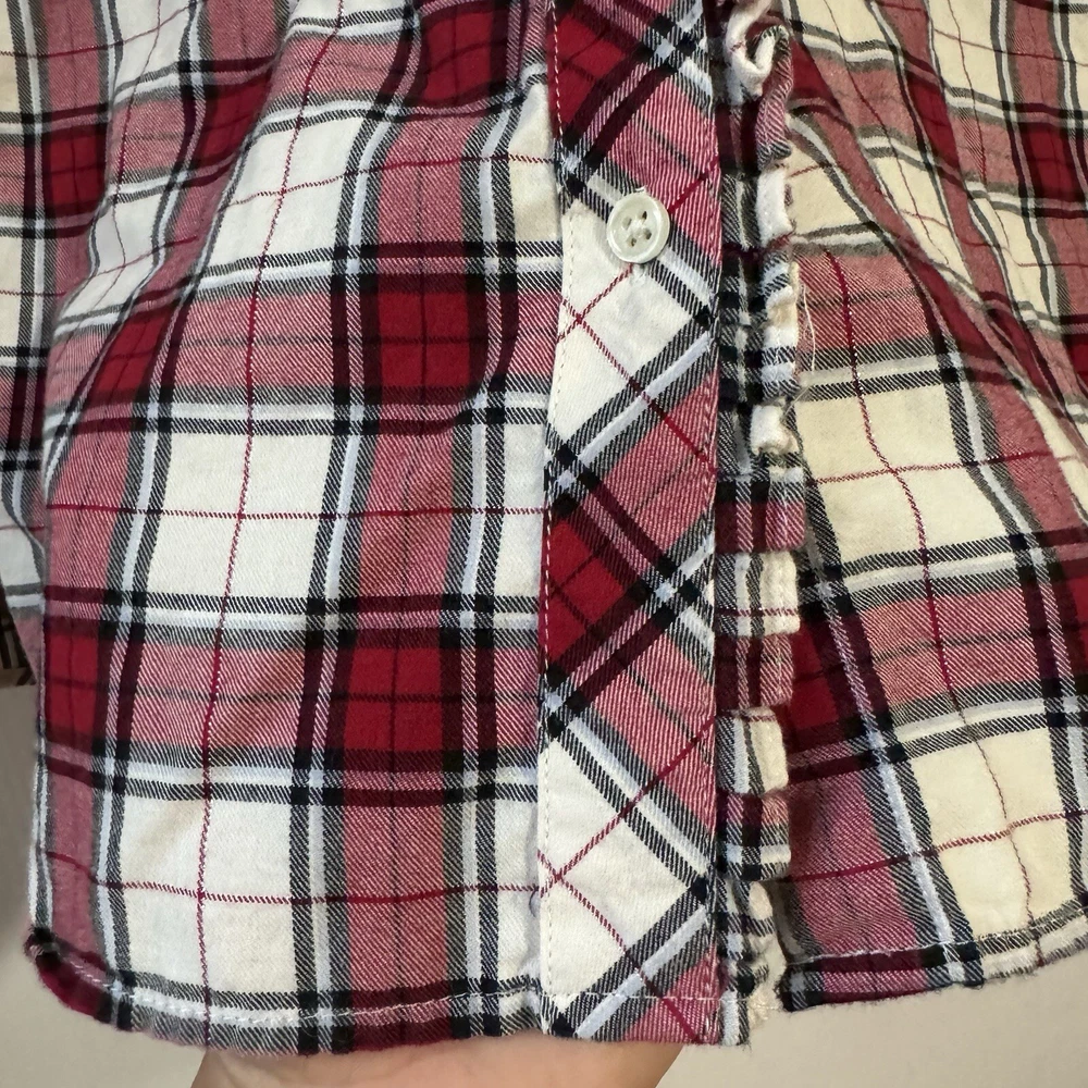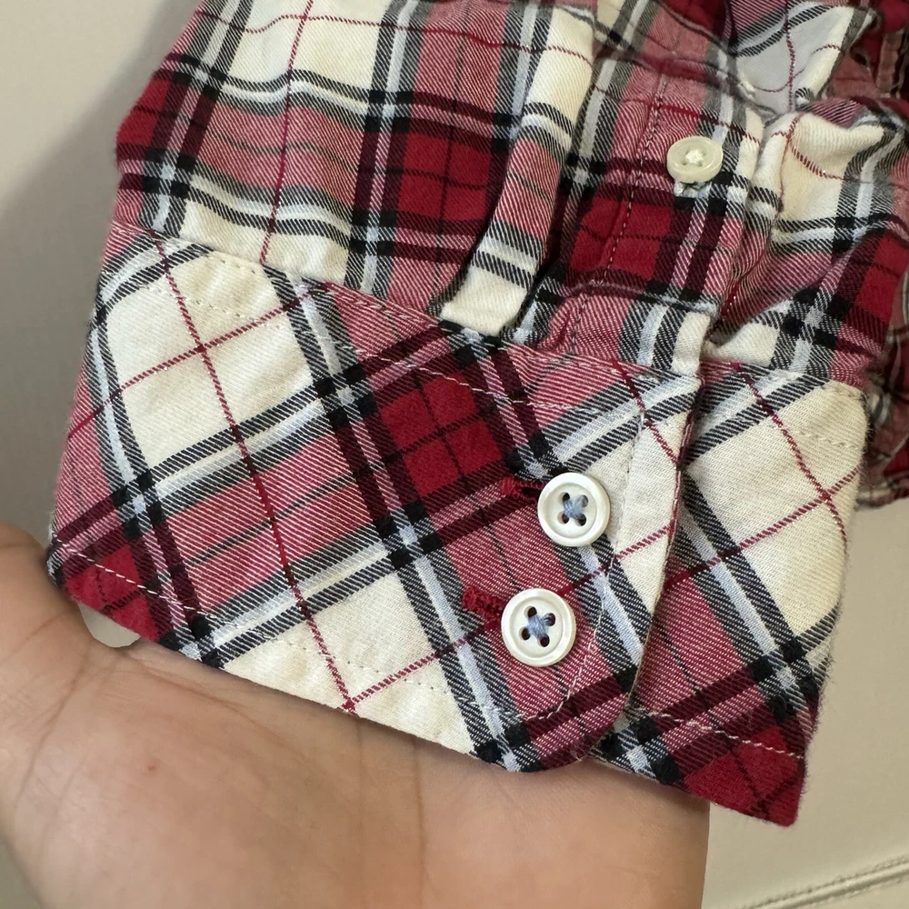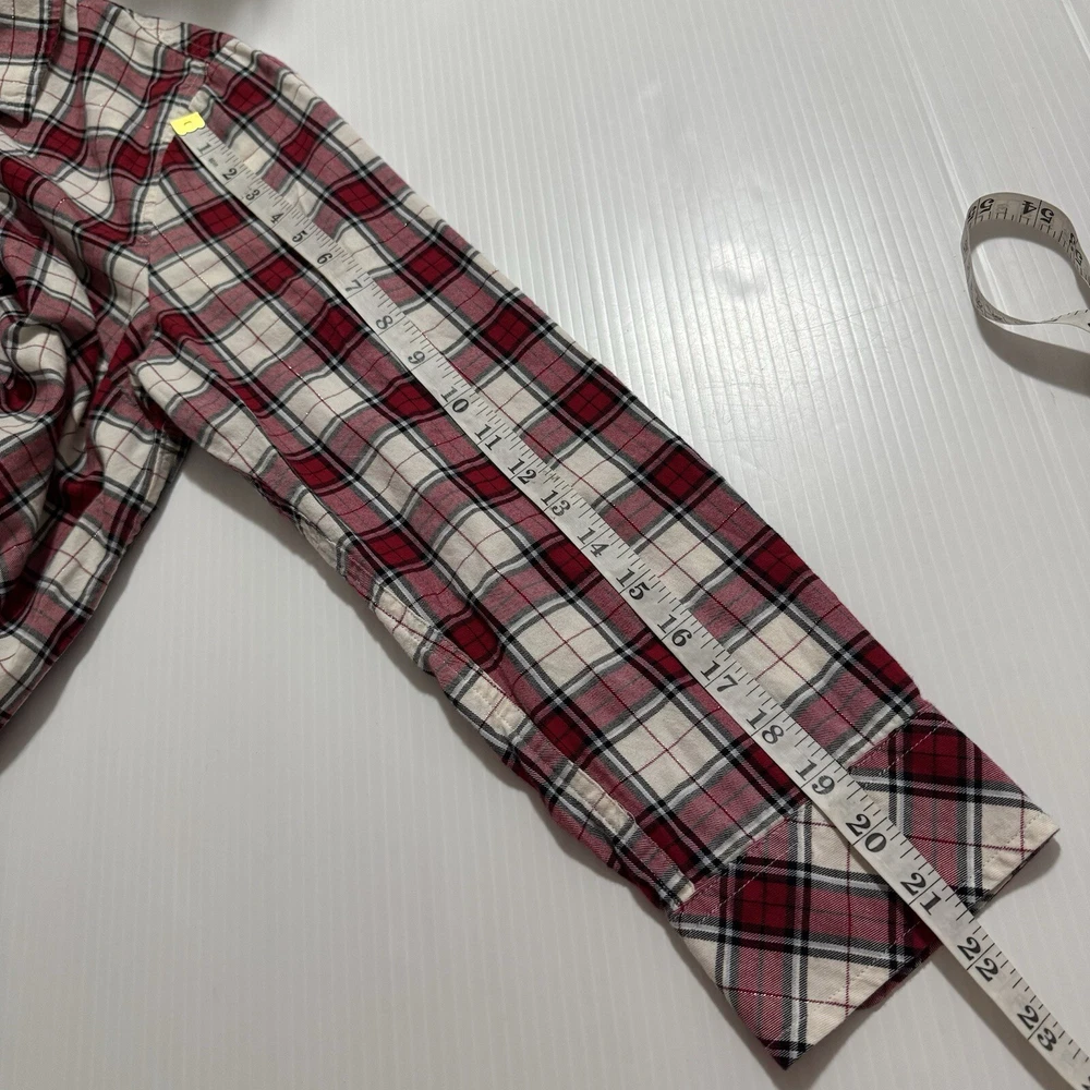 Talbots Women’s Plaid Button Front Flannel Shirt Ruffle Metallic Red White XLp Please see all photos Used good condition, with signs of use Note: Please take into account the measurements in the photos are approximations, you must be sure of your sizes. Please view all photos carefully before making any purchase. Shipments are made the same or next day on business days. Any questions please ask