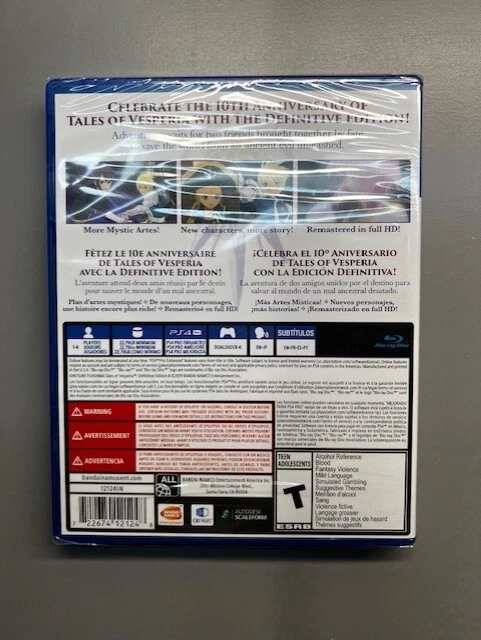 Immerse yourself in the world of Tales of Vesperia with this Definitive Edition for PlayStation 4. With multiplayer capabilities and a complete edition, this game is perfect for fans of action and adventure. The game is rated RP - Rating Pending and was released in 2018 by Bandai. Experience the thrill of battle and explore the vast world of Vesperia as you embark on an epic journey. This game is compatible with Sony PlayStation 4 and is a must-have for any video game enthusiast. Get your hands on this factory-sealed edition of Tales of Vesperia Definitive Edition today!