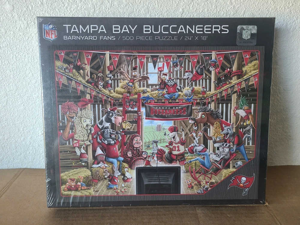 Brand new Tampa Bay Buccaneers Barnyard Fans Puzzle (500 Pieces) 24”x18”. Completely sealed! I'm always open to a good offer! Acepto cualquier oferta buena! Don't forget to check out my other items. No olvides ver los demas articulos en venta.
