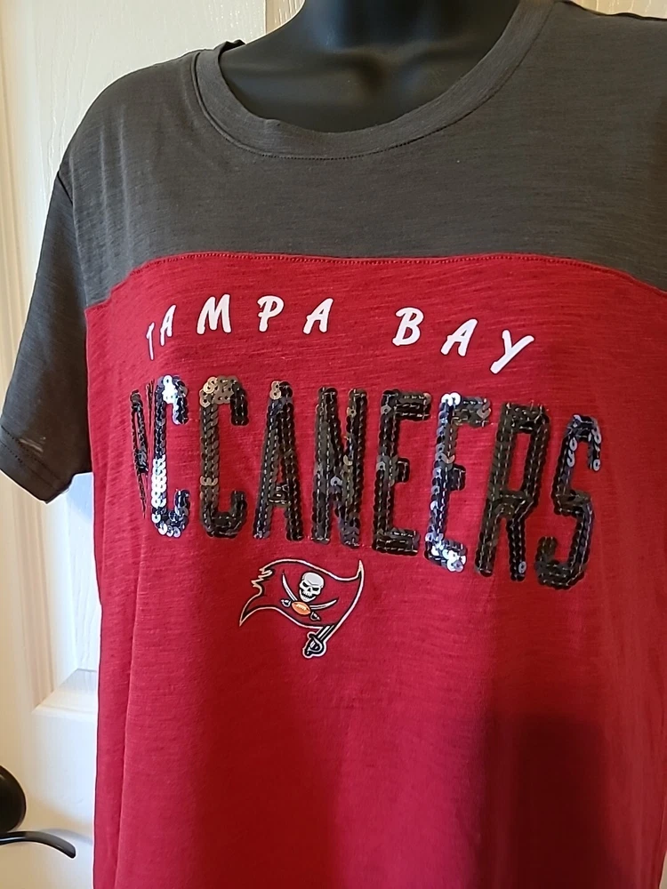 Tampa Bay Buccaneers Womens Large Red Gray Sequin Football NFL Team Apparel Colors = Black, Red Size = Large Measurements in inches Chest pit to pit 20 Length shoulder to hem 26.5 Condition = Excellent pre-owned condition. No signs of flaws. Tags = Tampa Bay, Buccaneers, Sequined, Fitted, Sporty, Team Spirit, NFL, Team Apparel Thanks for shopping with me! I love sourcing quality pieces for you and make quick shipping a priority. For accurate sizing, please compare measurements with your current wardrobe piece. Reach out with any questions!!
