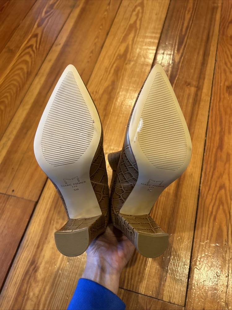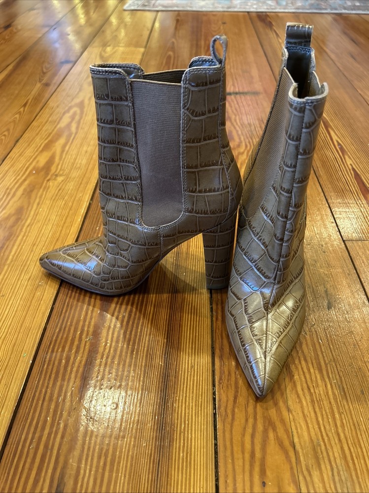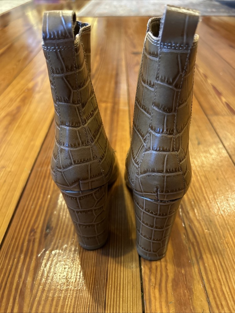 Marc Fisher Booties, Tan Croc, Size 5. Shipped with USPS Ground Advantage.