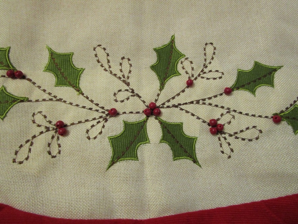 Red and white embroidered 43-inch handmade Christmas tree skirt