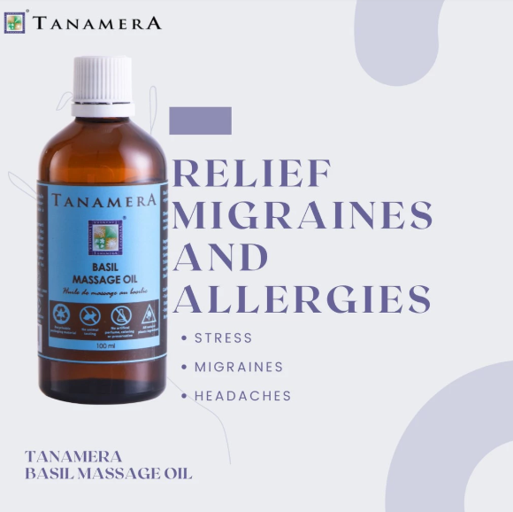 Tanamera Basil Massage Oil for Stress Relief & Muscle Relaxation with Herbal Benefits