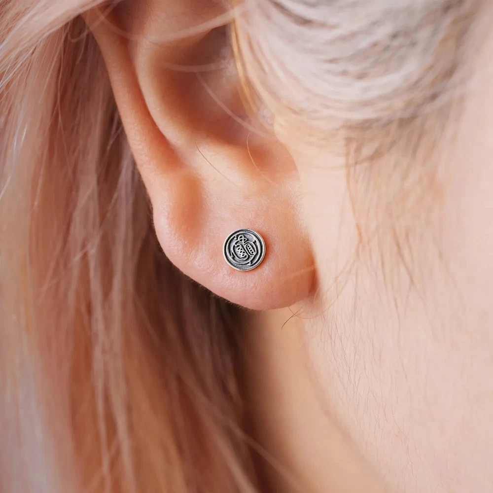Brand: Coppertist.wu SKU: C0194SZ Type: Earrings Color: Silver Metal: Oxidized Silver Occasion: Anniversary, Birthday, Christmas Style: Stud Shape: Round