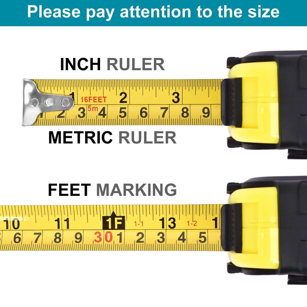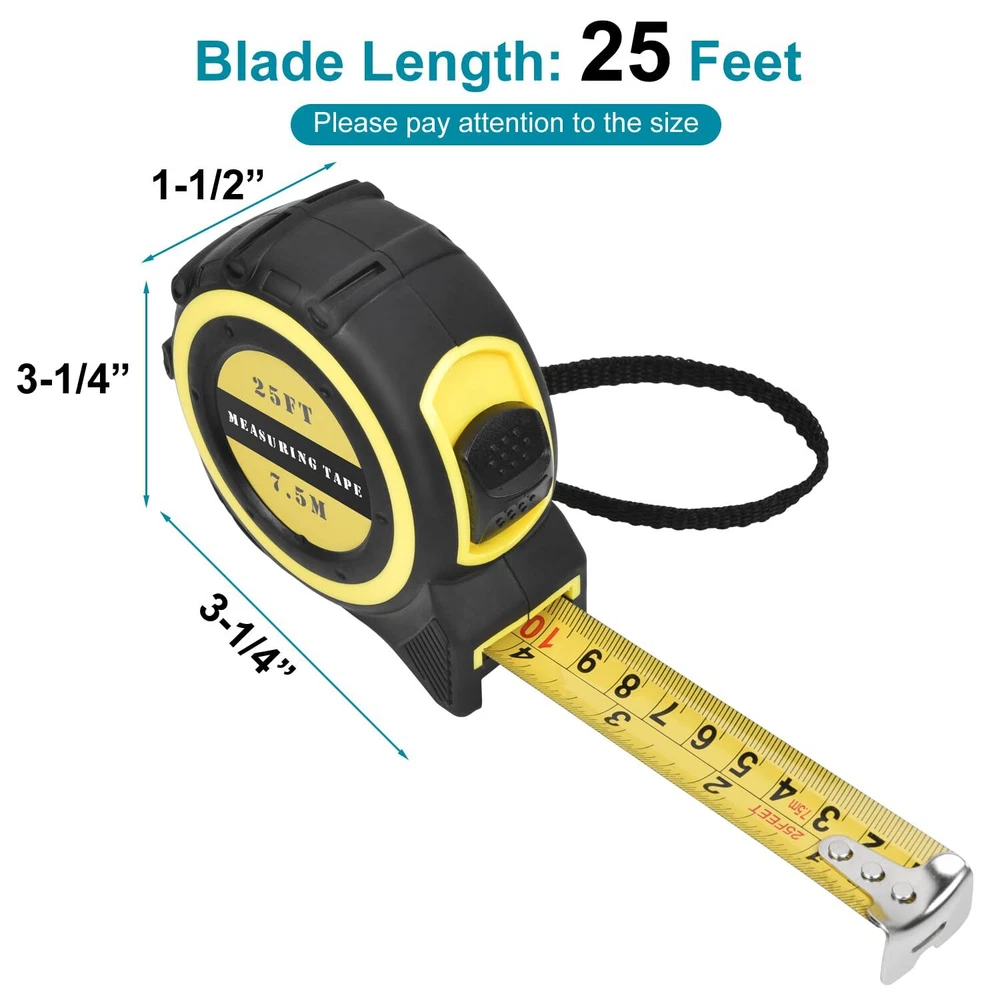 Tape Measure 25 Ft - Metal Retractable Tape Measure with Metric and Inches, Easy Read Steel Tape Measure, 1-inch Wide X 25 Foot Tape Measures 25 ft: The blade of this 25ft measuring tape is 1in width and is made of high-quality thickened steel and coated with a wear-resistant coating, super durable. The tape measure is an essential tool for anyone from homeowners and interior designers to professional handypersons, carpenters, metal or woodworkers, and architects. QUICK & EASY MEASUREMENTS: The tape measure features both metric and imperial measurements, including inch, cm, and mm, making it perfect for professional carpenters. PREMIUM MATERIAL: The casing is made of a top-grade rubberized material that is conveniently shock-absorbent, making it durable and long-lasting. EASE OF USE: The hook slot can be latched onto a protruding nail or screw head, which will hold the tape in place more steadily. Extend the blade, use the thumb lock to stop where you need it, and unlock the thumb to retract the blade. The belt clip on the back of the case allows hooking the tape measure conveniently onto a belt, tool belt, or pocket. QUALITY COMMITMENT: We stand behind the quality of our products. If for any reason you are not satisfied with your purchase, please contact us. We provide a 60-day money-back and 12-month warranty. 100% Satisfaction Guarantee for risk-free shopping! Measuring Tape Measure, 25 Ft Easy to Read Decimal Retractable Dual Side Ruler with Metric and Inches, for Surveyors, Engineers and Electricians, with Rubber Protective Casing Shipping We offer FREE shipping on all orders! We ship within Three business days of payment, usually sooner. We use a selection of shipping services such as UPS, FedEx, USPS etc. We only ship to the lower 48 states, no APO/FPO addresses or PO Boxes allowed. Local pickups and combined shipping options are not provided at this time. Return You can return a product for up to 30 days from the date you purchased it. Any product you return must be in the same condition you received it and in the original packaging. Please keep the receipt. Payment We accept payment by any of the following methods: PayPal Please pay as soon as possible after winning an auction, as that will allow us to post your item to you sooner! Feedback Customer satisfaction is very important to us. If you have any problem with your order, please contact us and we will do our best to make you satisfied. Contact Us If you have any queries, please contact us via ebay. We usually respond within 24 hours on weekdays. Please visit our eBay store to check out other items for sale! Thank you for shopping at our store.