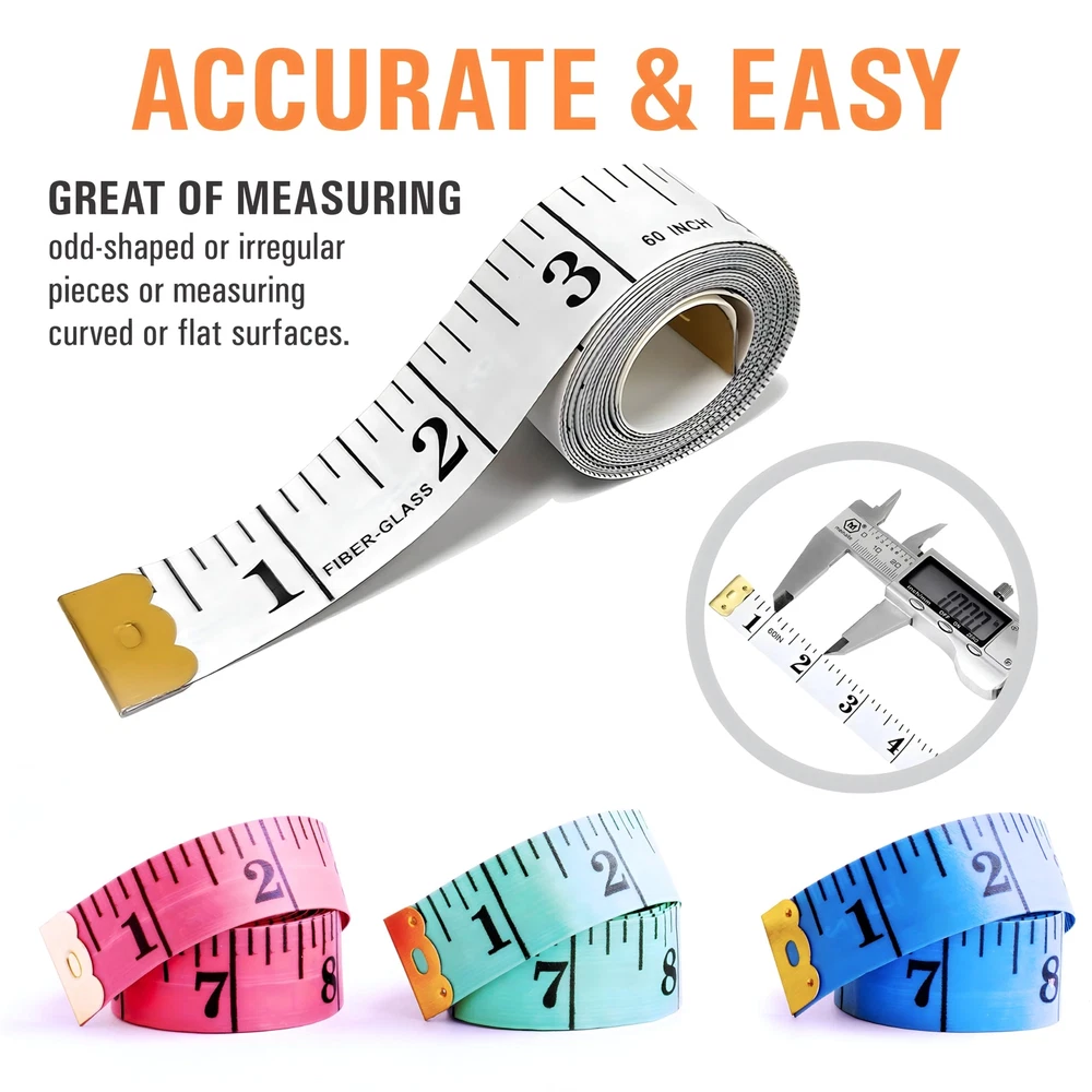 This tape measure is perfect for all your sewing and crafting needs! This soft tape measure is made of high quality plastic material, durable and not easy to break. It has a double-sided scale, one side is in inches, and the other side is in centimeters. This tape measure is designed with a lock button, which can lock the length measurement data and prevent the tape measure from retracting, making it more convenient to use. The tape measure also has a metal hook, which can be hung on a hook or drawer for easy storage. This tape measure is perfect for measuring body size, clothing size, furniture, rooms, and other items. It is a great tool for sewing, tailoring, knitting, crocheting, and other crafts. This tape measure is also a great gift for friends and family who are interested in sewing and crafts. 2 in 1 Design: This tape measure has two scale designs, one is inch scale and the other is centimeters scale, which can meet your different measurement requirements, such as Cloth tape measure, fabric measuring tape, tailor measuring tape, waist tape measure and other items. Soft and Durable Material: This Soft measuring tape is made of high-quality PVC material, which is soft, flexible and durable. The tape measure has a good hand feeling, and will not hurt your skin when you measure. And the tape measure is not easy to break and has a long service life. Double-Sided Measuring: This measuring tape has two different scales; one is inch scale and the other is centimeters scale. You can measure the length in both inches and centimeters, which is very convenient and practical. And the tape measure has a lock button, which can lock the measurement data and prevent the tape measure from retracting. Wide application: Tape measure body measuring tape, Cloth tape measure, tailor measuring tape, Sewing tape measure. This is good Sewing tool, tailoring, Craft tape measure, Accurate tape measuring for sewing, fabric measuring tape, body measuring tape, Waist measurement or measuring any curve surface and also irregular surface. Measuring tape is also suitable, a crafter, tailer measuring or whoever just need a flexible measuring tape. This high-quality tape is used for soft measuring tape and also flexible measuring tape. Moreover, it is also used for weight loss. Great gift idea for family friend and coworker. Portable and Pocket Size: This soft measuring tape is small in size and light in weight, which is very convenient to carry. It has a pocket clip at the bottom, which can be easily hung on your pocket or bag, and you can take it with you at any time.