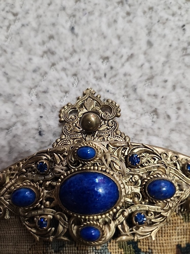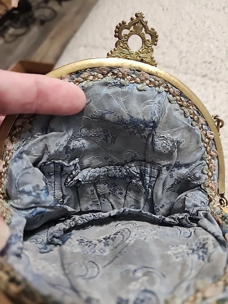 $ 52.81920s Antique Beaded Purse Hand Bag Brass Frame Chain Flapper Design