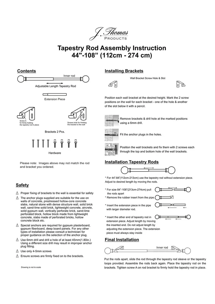 STRONG ROD SET: Strong metal rod of 3/4 inch diameter with adjustable length structure, extends from 44 to 108 inches. Imported premium heavy-duty metal material to ensure long-term use, more durable than most rivals. GREAT FOR TAPESTRIES: This decorative rod with a thick metal tube is capable of handling heavy art and fabrics; can hold up to 22 pounds. Art Gallery quality, ideal for home or business. HIGH QUALITY FINIAL: This decorative rod pairs perfectly with various home styles (simple, retro, modern, rustic, industrial, contemporary etc.) PERFECT GIFT: Making it a perfect practical gift for family or friends. Ideal as a housewarming gift Each rod set was carefully checked for quality and well-packaged. EASY TO INSTALL: tapestry rod set comes ready to hang with all the mounting hardware and instruction. Adjustable curtain rod brackets sits 1” from the wall to provide an integrated look to your tapestry. MONEY BACK WARRANTY: We use and test our rods for quality assurance. If you have any issue just message us for any question or concern. We’ll make sure you are satisfied.