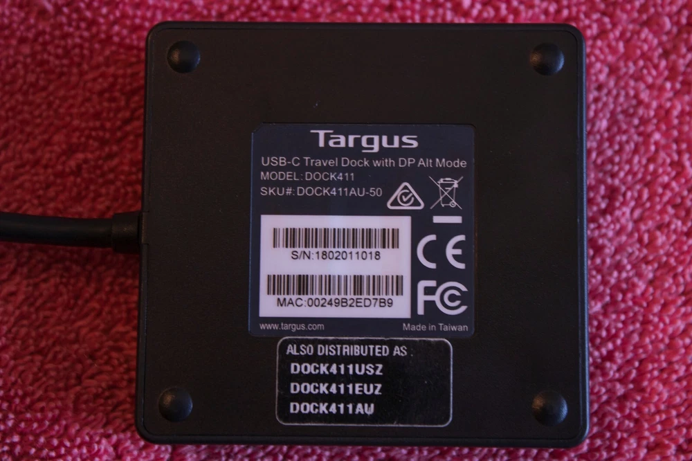 I've tested the USB 3.0 port and ethernet port on the travel dock to confirm it still works. There are drivers on the Targus website incase it doesn't work as intended for the ethernet. Definitely useful for when you're short on ports or need more displays. Note: You will need a laptop that has a "Displayport Alt Mode" capable USB-C port to use the HDMI and VGA outlets. The main way to tell if you have one is a "Thunderbolt"-like sign or a "DP" logo near the Type C port (i.e. Macbooks). Last photo attached will show a diagram (from Startech's website on what DisplayPort Alt Mode is). If you are unsure if your laptop or PC has one, look up your product/motherboard online. Model: DOCK411 (USB-C Travel Dock) ------------ Condition - Used Type - USB Type-C Dock Color - Black Brand - Targus Expansion - HDMI 2.0 and VGA (Displayport Alt Mode Only), USB 3.0 port and gigabit ethernet