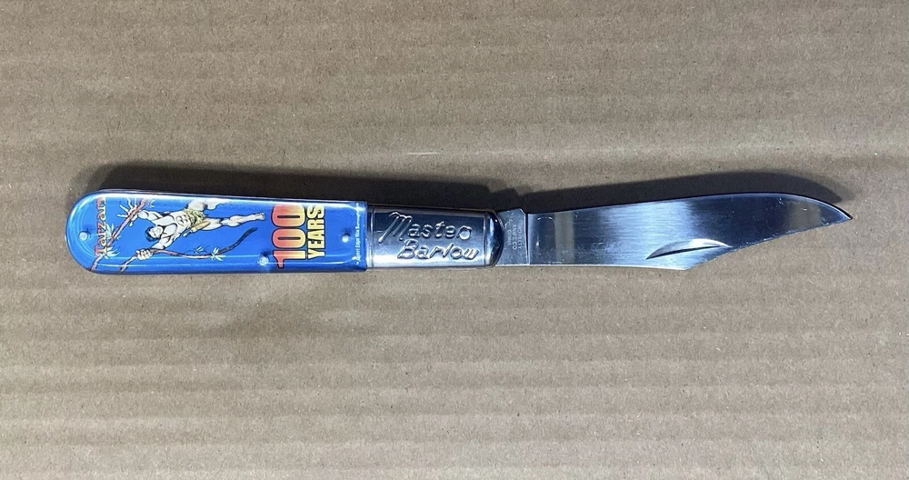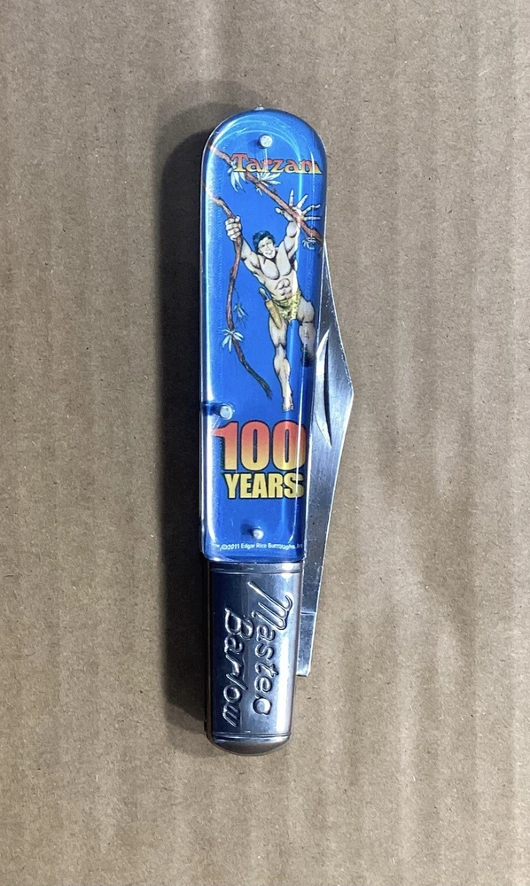 You are purchasing a vintage pair of Tarzan Pocketknives celebrating Tarzan’s 100 th Anniversary, 1912-2012 in the original box produced by Barlow & Master Barlow. The Tarzan set includes two pocket knives, one is a Master Barlow with a single blade, the smaller knife is Barlow with two blades and has a little ball type game in the handle. The Tarzan knife set is in unused mint condition in the original box. The Tarzan knife set has been displayed in a Tarzan collection since it was purchased new. Please refer to photos as they are an important part of the description and ask any questions before purchasing. Please check my other items offered on e-Bay. Yes, I do combine shipping! Payment would be appreciated within 4 days. I will gladly combine items to save on shipping. International bidders please check shipping costs before bidding. Items will be shipped using eBay's Global Shipping Service.