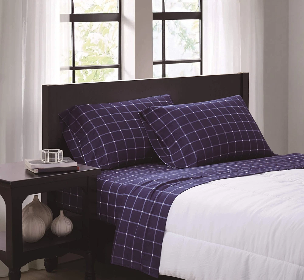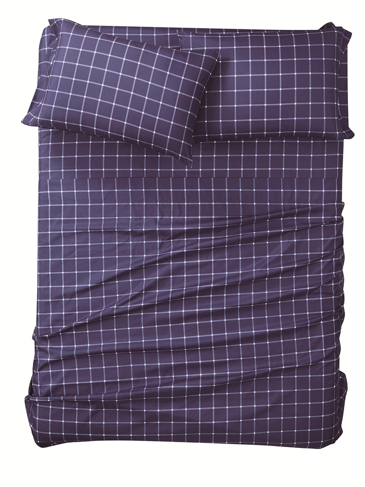 A smaller scale tattersall pattern is a perfect coordinate to any busy room or if you are looking for a modern look. The gray and gray colors use a white base and the navy version uses an inverse with navy as the background and white as line pattern color. Simple lines make the best coordinates for your room and theses individual panes have added depth as the cross bars use a textured striping style and the intersecting points are solid which adds more depth to the pattern without adding complexity. Made from 100% microfiber polyester items are make for use thought out the year. This collection features deep pockets to fit thicker mattresses.Includes fitted sheet (60x80 inches) with 13 inch pocket to fit up to a 15 inch deep mattress, flat sheet (90x102 inches), and pillowcases (20x32 inches)Each item in the set is made from 100% microfiber polyester yarns in a percale weave and printed.This item is machine washable, but care should be taken to wash in appropriate size equipment to avoid damage.This item is imported from China. Truly Soft Tattersall Simple lines make the best coordinates for your room and theses individual panes feature printed texture all in 100% microfiber polyester. Includes fitted sheet (60x80 inches) with 13 inch pocket to fit up to a 15 inch deep mattress, flat sheet (90x102 inches), and pillowcases (20x32 inches) Each item in the set is made from 100% microfiber polyester yarns in a percale weave and printed. Machine washable