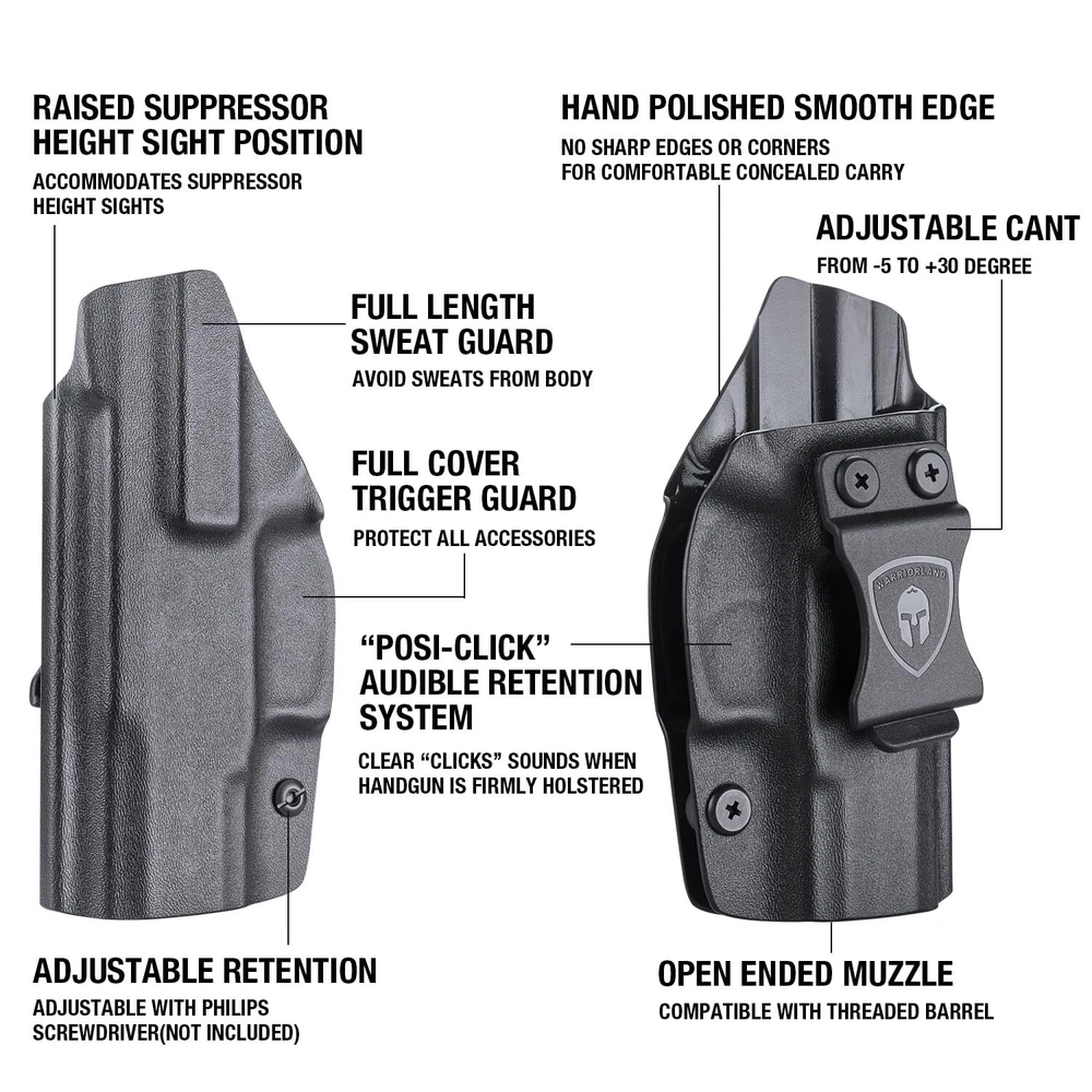 IWB Kydex Holster Custom for Taurus G3C/G2C pistols - 【Not fit any laser/light attachments】 Perfectly fits Taurus G3C / G2C / Millennium PT111 G2 / PT140 9mm IWB KYDEX holster for every day concealed carry. Comfortable enough for everyday use and very easy to hide no matter how you are dressed. ✈Carry Position Appendix Carry (AIWB), Hip Carry, Back Carry, Cross Draw. ✈Taurus G3C Holsters, US KYDEX&Design By using sturdy 0.8" Kydex material, it is lightweight, sturdy, durable, sweat-proof, waterproof and washable,providing comfort and confidence in any situation. Help you avoid accident. ✈Posi-Click Audible Retention Lock System, Fits Like Glove Holster for G3C / G2C possess Posi-Click Audible Retention Lock system, you would hear a "click" sound when your is firmly seated. ✈Full Cover Trigger, No Scratch, No Jitter The kydex Taurus G2C Holsters full covering all access to the trigger, which can avoid all possible accidents. All edges are polished and smooth designed be exceptional consistency and accuracy. Smooth inside instructure can avoid scratching your love handgun. ✈Durable Clip, Adjustable Cant Belt clip is suitable for 1.5’’ belt, with hook in buttom, it stick firmly in your belt whendrawing and holding. The Carry Angle (Cant) can adjust from -5° to 20° ✈Adjustable Retention Tension tightness is also adjustable, use phillips screwdriver to reach your ideal retention pressure. ✈Policy We offer a , if for any reason you are unsatisfied, please feel free to our 24/7 Customer Services for or a full of your purchase price, we stand behind the quality of our work! 【Taurus G3C Holster, US KYDEX&Design】 Custom for Taurus G3C / G2C / Millennium PT111 G2 / PT140 9mm /.40 , US KYEDEX made comfortable and durable. Inside waistband concealed carry holster, preserve your Taurus G3C/G2C handgun in perfect condition. (Note: Doesn't fit with laser/light attachments) 【Full Cover Trigger, No Scratch, No Jitter】 The holsters for G3C Taurus full covering all access to the trigger, which can avoid all possible accidents. All edges are polished and smooth designed be exceptional consistency and accuracy. Smooth inside instructure can avoid scratching your love handgun 【Posi-Click Audible Retention Lock System, Fits Like A Glove】 The G3C Taurus Holsters possess Posi-Click Audible Retention Lock system, you would hear a "click" sound when your is firmly seated 【1.5’’ Belt Fit Perfect】 Taurus G2C / G3C Holsters belt clip is suitable for 1.5’’ belt, with hook in buttom, it stick firmly in your belt when drawing and holding 【Adjustable Cant】 The Carry Angle (Cant) can adjust from -5° to 20°, use phillips screwdriver to customize the CANT to meet your need 【Adjustable Retention Pressure】 Retension tightness is also adjustable, use phillips screwdriver to reach your ideal retention pressure 【】 We offer a , if for any reason you are unsatisfied, please feel free to our 24/7 Customer Services, we stand behind the quality of our work! 【Please Noted】 We have Left Hand Draw(IWB) and Right Hand Draw(IWB) Options, Choose Left Hand Draw(IWB) you will get holster for left hand draw, Choose Right Hand Draw(IWB) you will get holster for right hand draw. If you can't find, it means that (right or left) out of stock, and will come back soon.
