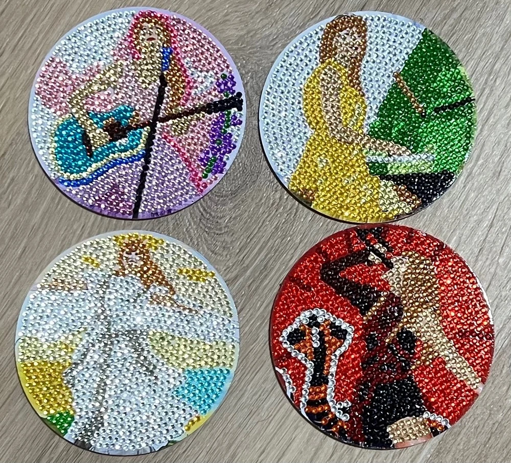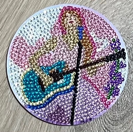 Add sparkle and personality to your space with this Taylor Swift Bejeweled Diamond Painting Coaster Set . This set of four round coasters features dazzling, completed diamond art designs inspired by iconic Eras looks, each one shimmering with vibrant colors and intricate detail. Condition: New / Handmade (completed diamond paintings) Quantity: Set of 4 round coasters ✨ Features: Fully completed diamond painting designs with high-shine gems Four unique, era-inspired images Smooth, sturdy coaster base for everyday use or display Helps protect surfaces from heat and moisture Perfect for coffee tables, desks, or decorative display These coasters are both functional and eye-catching—ideal for Swifties, music fans, or anyone who loves sparkly handmade décor. A unique gift or collectible that adds a touch of glam to any space!