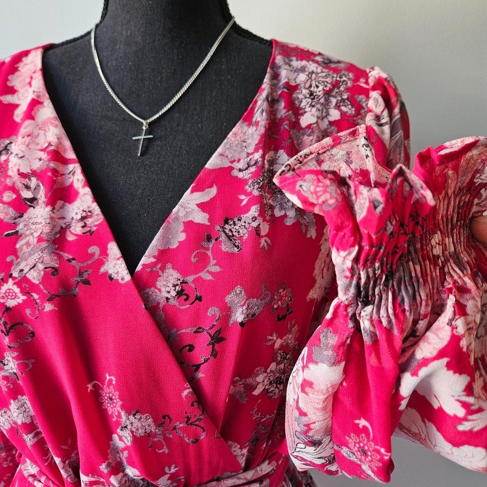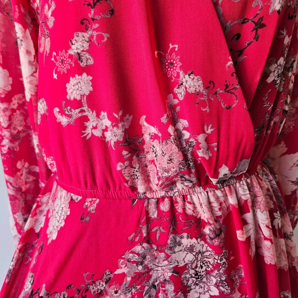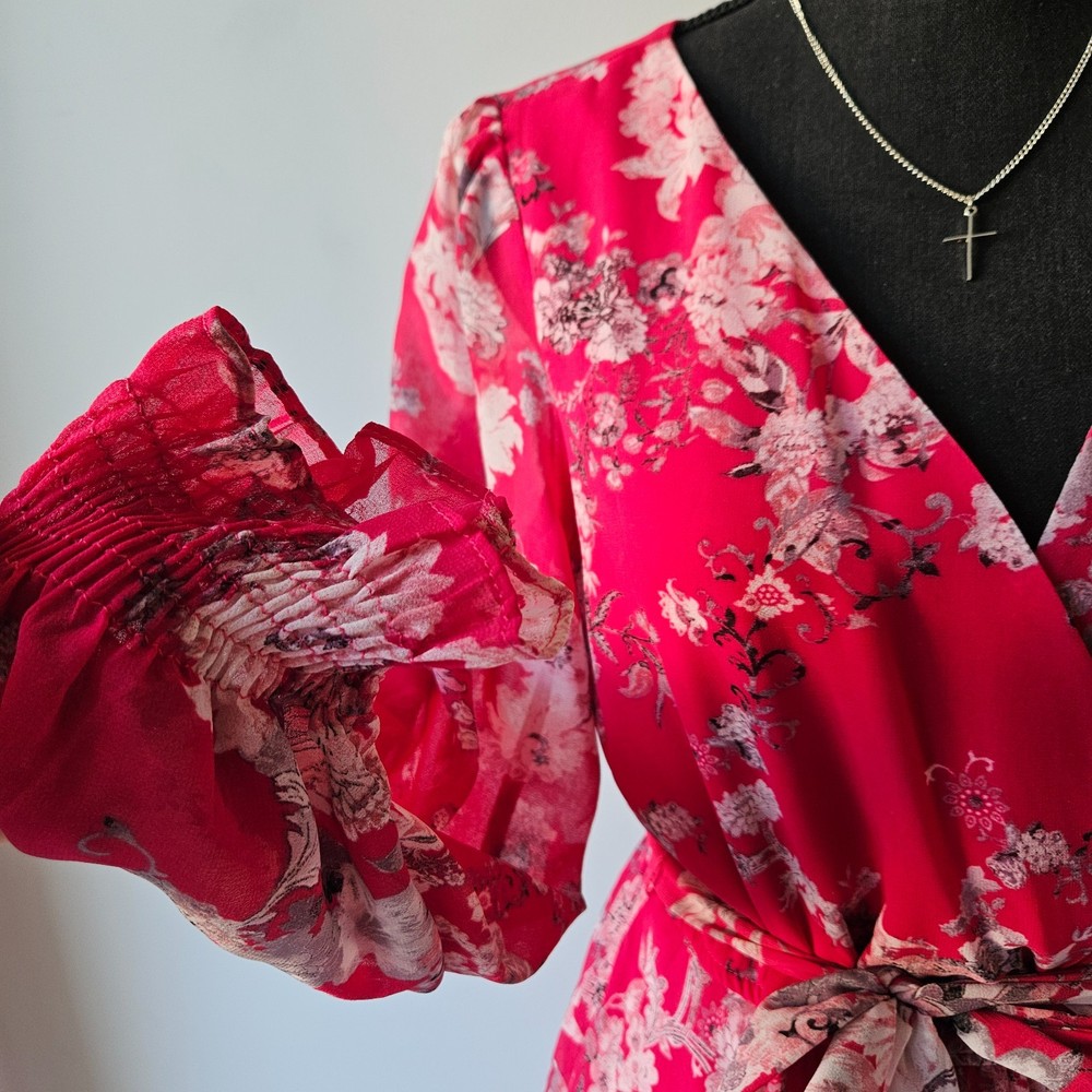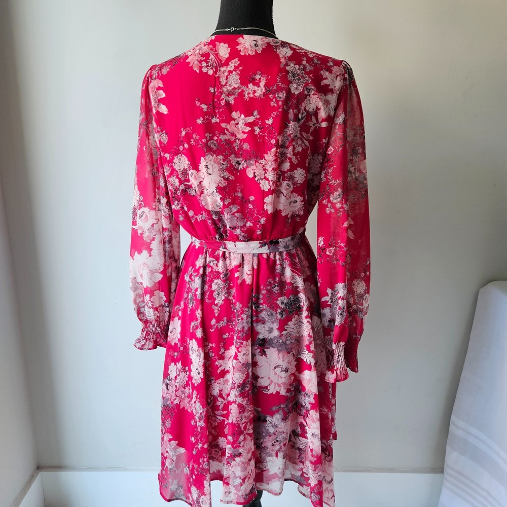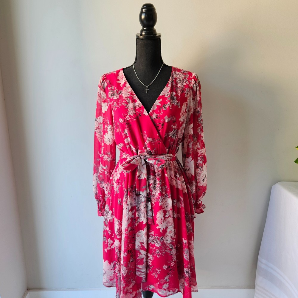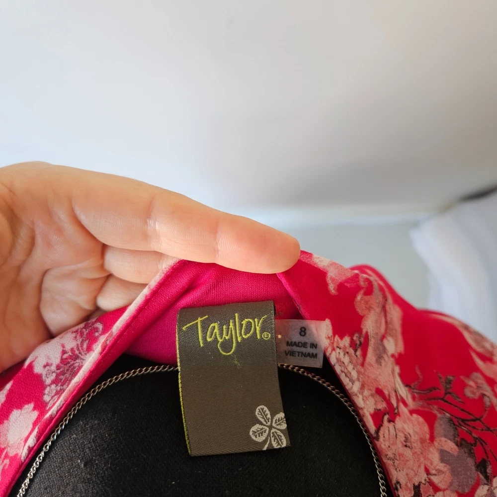 ✨ Taylor Pink Floral Wrap Dress – Size M/8 Beautiful women’s dress in excellent condition, gently pre-owned with no flaws. Wrap style with belt tie at waist Pink base with floral pattern Long sleeves Midi length Double lining in skirt for comfort and coverage Lightweight and flowy fabric, perfect for spring & summer events No stains, no rips. See all photos for details. Bundle & save! Extra discount when you buy 2 or more items.