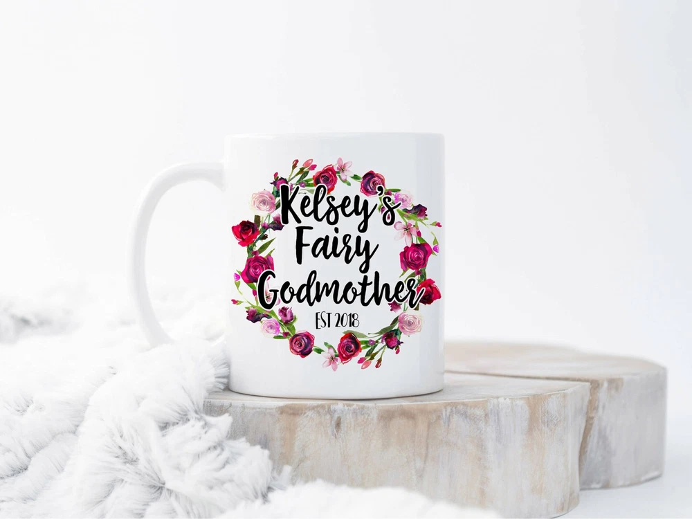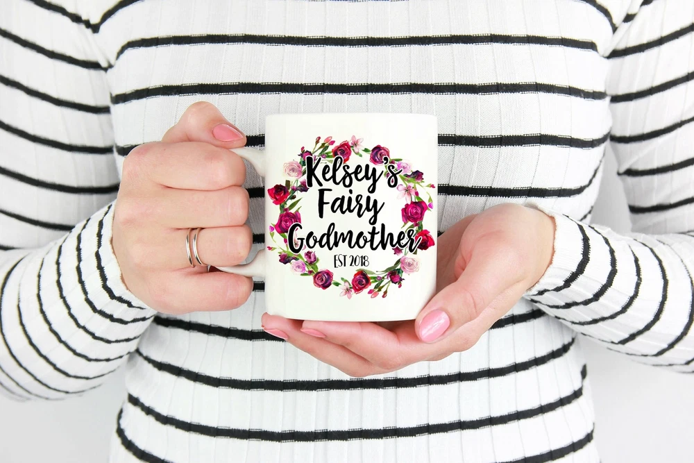 Custom Godmother Mug Godmother Gift Godparent Gift New Godparent Gift Idea For Product Details.. This high quality 11oz. ceramic white mug has a premium hard coat that provides crisp and vibrant color reproduction sure to last for years. Perfect for all hot & cold beverages. The highest quality printing possible is used. It will never fade no matter how many times you wash it. Material: 100% Ceramic. Print both sides. Dishwasher and Microwave Safe. High Gloss + Premium White Finish. Printed in the U.S.A. Personalized & Custom. We support personalized and custom mug to add custom, when placing an order, you can add notes to the "order note" in shipping address section. Also you can contact us directly via message. Shipping Info. Ready to ship in 1 to 2 business days, All products are made-to-order and proudly printed in the United States. Shipped by USPS and DHL, You will receive your order in 5-7 days. Replace & Refund. All products are defective during shipping broken, chipped will be replaced free of charge. You are not satisfied with the product, we will refund 100% money to you. If any other issues arise, please do not hesitate to message, we would be more than happy to assist you.