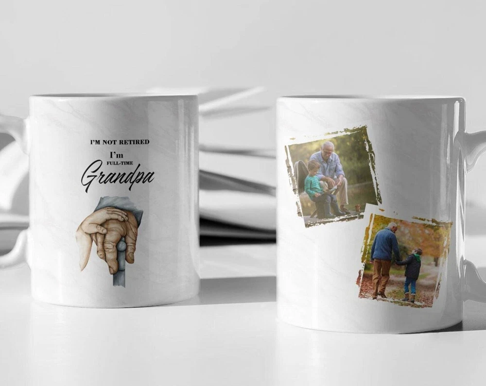 I'm Not Retired I'm Full Time Grandpa Personalized Mug Custom Photo Mug Gift For Product Details.. This high quality 11oz. ceramic white mug has a premium hard coat that provides crisp and vibrant color reproduction sure to last for years. Perfect for all hot & cold beverages. The highest quality printing possible is used. It will never fade no matter how many times you wash it. Material: 100% Ceramic. Print both sides. Dishwasher and Microwave Safe. High Gloss + Premium White Finish. Printed in the U.S.A. Personalized & Custom. We support personalized and custom mug to add custom, when placing an order, you can add notes to the "order note" in shipping address section. Also you can contact us directly via message. Shipping Info. Ready to ship in 1 to 2 business days, All products are made-to-order and proudly printed in the United States. Shipped by USPS and DHL, You will receive your order in 5-7 days. Replace & Refund. All products are defective during shipping broken, chipped will be replaced free of charge. You are not satisfied with the product, we will refund 100% money to you. If any other issues arise, please do not hesitate to message, we would be more than happy to assist you.