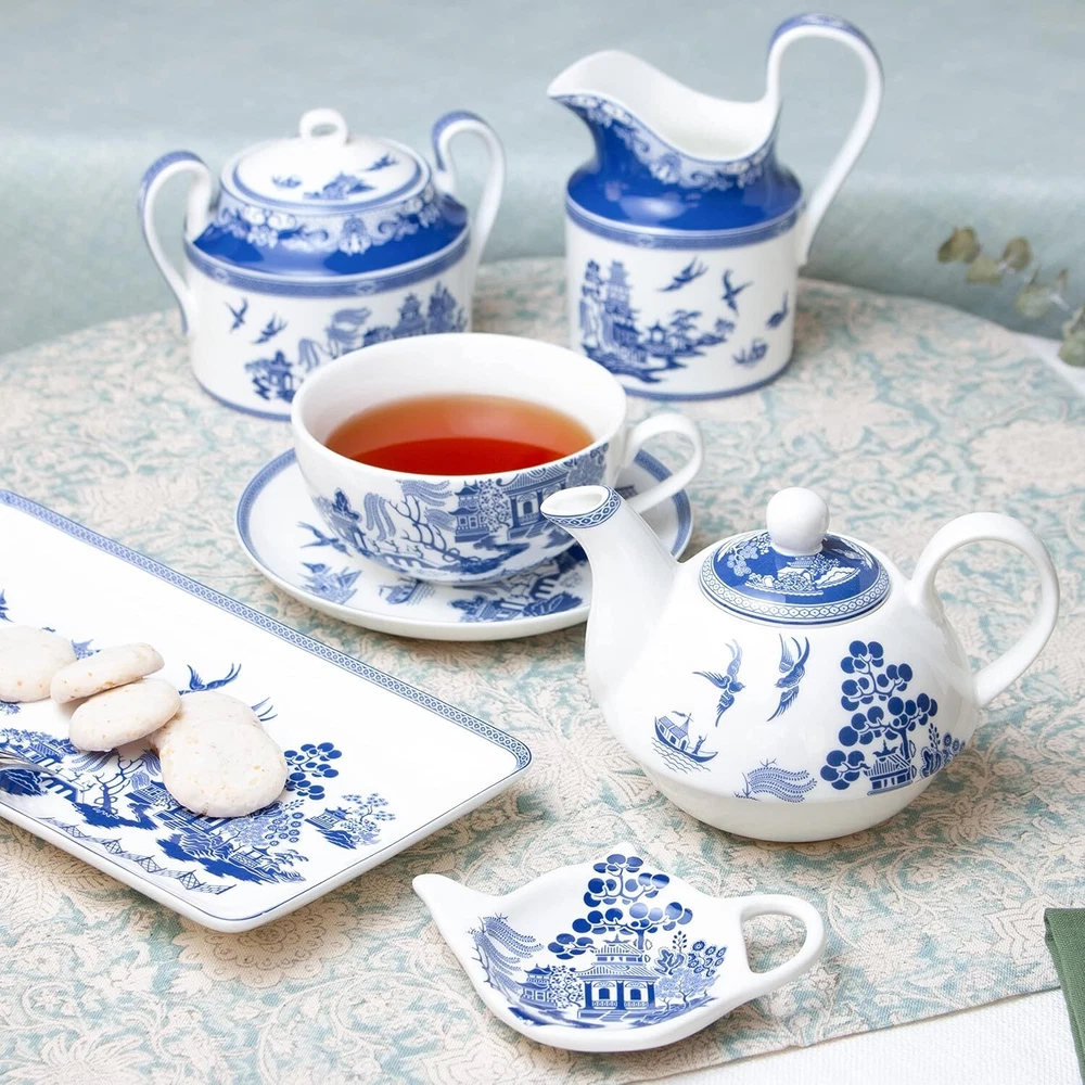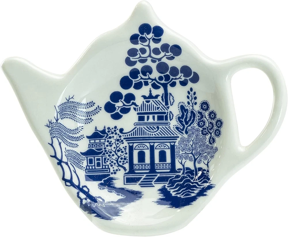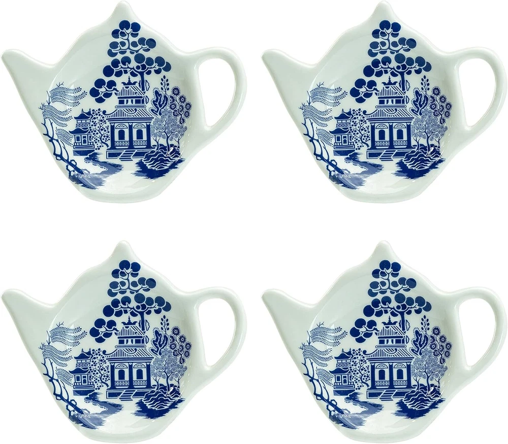 Tea Bag Caddy Holder, Set of 4 (Blue Willow) Blue Product Details Color: Blue Material: Porcelain Brand: Grace Teaware Shape: Leaf Product Care Instructions: Microwave Safe, Dishwasher Safe Is Dishwasher Safe: Yes Product Dimensions: 4.5"L x 4"W Manufacturer: Grace Teaware UPC: 810078462309 Item Weight: 14 ounces Set contains: (4) Teapot Shaped Tea Bag Holders, approx 4-inches wide, Made of Fine Porcelain, Dishwasher Safe. These Tea Bag Holder / Coaster / Caddies are an excellent accessory for all tea lovers. Perfectly sized for holding almost any stir spoon, tea bag, strainer, tea ball or even loose tea. They protect your table top from spills and are ideal for everyday use or any tea party. Makes an ideal hostess gift. Also makes a great kitchen accessory, can be used as; an individual butter dish per person, place card name holder, a small dish for olive pits, dollops of jam, serving sugar lumps, lemon wedges, mint leaves and more. Crafted in China, Designed by Grace Teaware This Tea Bag Holder / Coaster / Caddies are an excellent accessory for all tea lovers. Also makes a great kitchen accessory, can be used as; an individual butter dish per person, place card name holder, a small dish for olive pits, dollops of jam, serving sugar lumps, lemon wedges, mint leaves and more.
