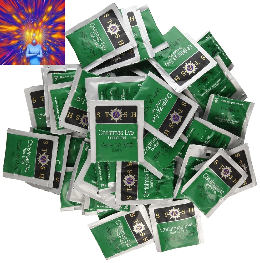 Store New Arrivals Add to Favorite View Feedback Contact Tea Christmas Eve Herbal Tea - Naturally Caffeine Free, Non-Gmo Project Verified Premium Tea with No Artificial Ingredients, 100 Count (BULK PACKAGING) Description Item model number 79740 Unit Count 100 Count Tea Variety Peppermint Flavor Name Christmas Eve Flavor Christmas Eve Manufacturer Tea Item Form Teabags Package Dimensions 8.35 x 7.56 x 5.79 inches; 1.1 ounces Size 100 Count (Pack of 1) TIS THE SEASON: Our exclusive Christmas Eve herbal blend is a delicious caffeine-free blend of mint, orange and sweet spices, perfect for a moment of peaceful reflection. This seasonal blend is delicious with milk, plain, or sweetened with sugar or honey. 100 COUNT BOX: Individually packaged bags guarantee every cup will taste as fresh as the day it was bagged, whether herbal, white, green, black, or oolong. Steep your tea according to instructions on box & enjoy every sip of premium quality Stash Tea Savour the Goodness: Our teas are made with top-quality ingredients that are meticulously chosen and blended to an artful balance. Every Stash Tea flavor is designed to turn your daily ritual into a joyful moment of tranquility THE STASH TEA COMPANY was founded in 1972, supplying loose herbal teas & bulk herbs to natural food stores. In 1975, we added bagged teas & began to sell a full line of traditional & herbal teas. Try our Chamomile, Peppermint, Earl Grey, Green Tea, & more Stash Tea: Brought to life in 1972 by 2 Portland hippies, we believe that tea is an opportunity to excite the senses and surprise your taste buds with a diverse range of bold flavors Box of 100 tea bags, great bulk size for foodservice or restaurants Created especially for the holidays, this is a festive herbal blend of mint and sweet spices Relaxing and fragrant this holiday tea can be drunk year round Kof-K Kosher certified, caffeine free, ships in Frustration Free Packaging Blended in the USA, with natural ingredients from around the world From the manufacturer Products made for teaheads like you Wellness Driven by a fervent love for combining herbs, spices, and botanicals, our mission is to uplift the mind, body, and soul through revitalizing tea blends. Turns out, you can sip your way to happiness. Premium Take a sip of luxury with our Premium line of teas. Made with high quality tea from some of the finest tea estates around the world. Holiday Get into the spirit of the season with our line of Holiday Teas. With flavors reminiscent of your favorite holiday moments, you’ll love creating new memories with your loved ones as you sip these teas. Loose Leaf Sourced around the world and blended in Oregon, we offer premium loose-leaf tea for every mood to satisfy any tea aficionado. Brew in a strainer or tea press for a truly remarkable cup of tea. ABOUT US We offer the best prices around on high quality products. Our E-store includes media such as books, movies, music and games while offering electronics, toys, sporting apparel, clothing, tools, general home, garden items and more. SHIPPING We are always working hard to ensure your package arrives as soon as possible. Please understand that some factors like weather, high postal traffic, and the performance of shipping companies are outside of our control. We offer free shipping to the lower 48 states and ship within 2 business days of payment, usually sooner. We do not accept P.O. Boxes. Please provide a physical address. For shipping outside of the continental USA, we only use eBay's Global Shipping Program.The item is shipped to KY and then sent to the rest of the world. International customers are responsible for all duties and taxes. Continue to check out in order to calculate costs for shipping the item to your country. Messages regarding eBay's Global Shipping Program MUST be directed at eBay EXCLUSIVELY. RETURNS We offer a 30-Day Return Policy on items which you are not completely satisfied with. You have the option for a full-refund or an exchange of the item. No returns are available on items shipped outside of the USA. PAYMENT We accept PayPal. CONTACT US This page content is yet to come Please ad us to your favorite seller and visit again later Thank You CUSTOMER SATISFACTION We try our very best to make sure every customer is completely satisfied. If there's a problem, message us! We're happy to help. WE ACCEPT