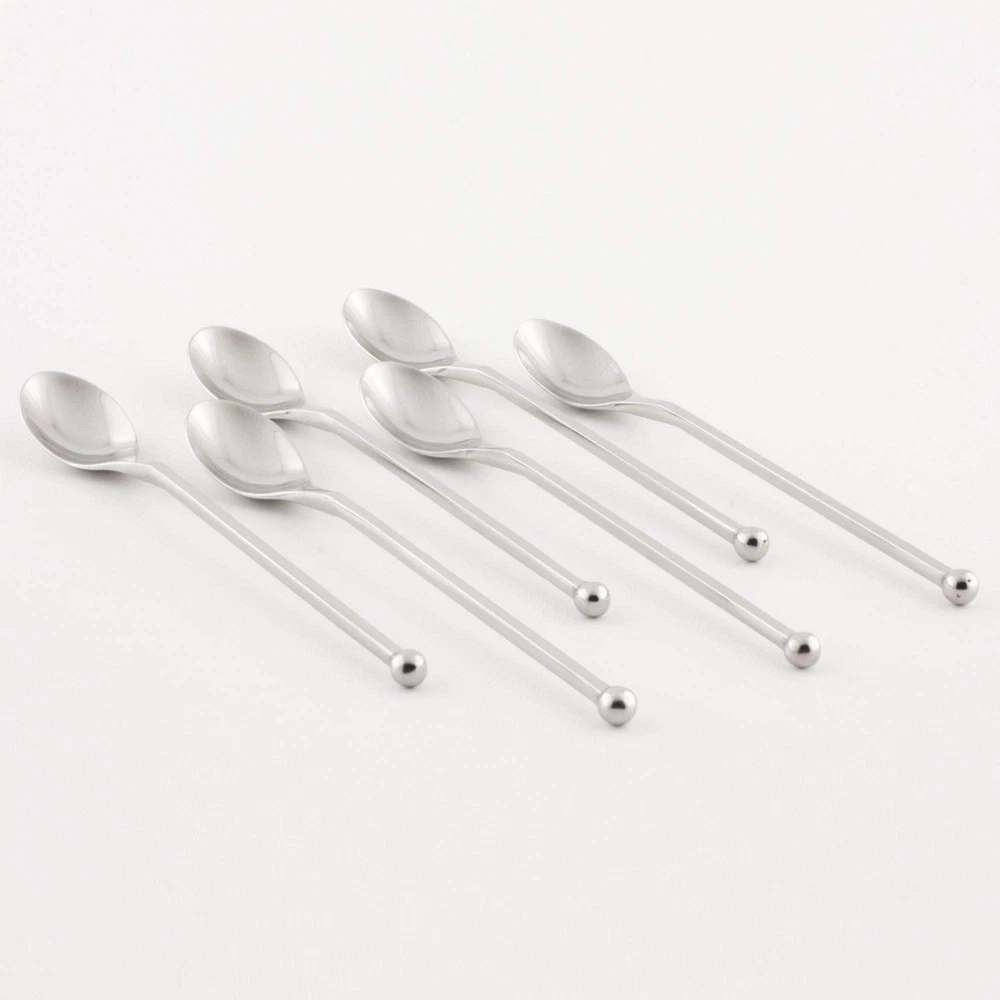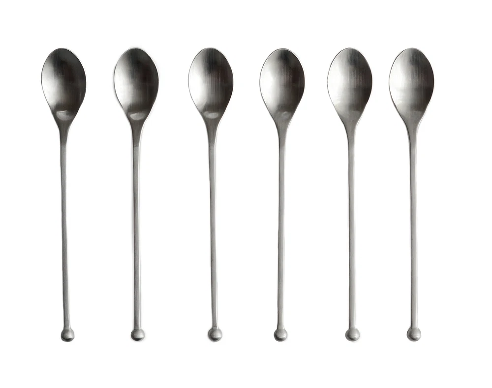 Experience unmatched utility and style with ’s high-quality stainless steel iced tea spoons. Designed to enhance your beverage experience, these spoons are perfect for a variety of uses, from stirring chocolate milk to scooping coconut oil. Whether you're a professional bartender or simply love to entertain at home, these spoons are an essential addition to your kitchen toolkit. Product Details: Set Includes: 6 iced tea spoons Material: Premium stainless steel Finish: Matte brushed Size: 8 inches each Enhance your drink preparation and serving experience with ’s Stainless Steel Iced Tea Spoons. Designed for both aesthetics and functionality, these spoons are a must-have for anyone who appreciates quality and elegance in their kitchenware collection.Perfect for stirring your favorite iced beverage. Complements the Flatware place setting. Stainless steel spoons are dishwasher safe. Stirring ball tip. Set of six. Gloss finish. Approx. 8 inches in length. Versatile Use: Ideal for stirring frozen drinks, milkshakes, and iced tea, or for scooping condiments like coconut oil. Perfect for use at bars, home kitchens, and parties. Professional Quality: Crafted from hand-forged high-quality stainless steel, ensuring durability and corrosion resistance. Ergonomic Design: Features a comfortable, ergonomically designed handle that makes stirring and scooping easy, reducing hand fatigue. Innovative Stirring Ball Tip: Each spoon includes a unique ball tip to enhance the efficiency of mixing drinks, ensuring a perfect blend every time. Generous Length: Each spoon measures 8 inches long, ideal for reaching the bottom of tall glasses and pitchers. Sleek Finish: The matte brushed finish not only adds a sophisticated touch to your cutlery collection but also resists fingerprints and smudges.
