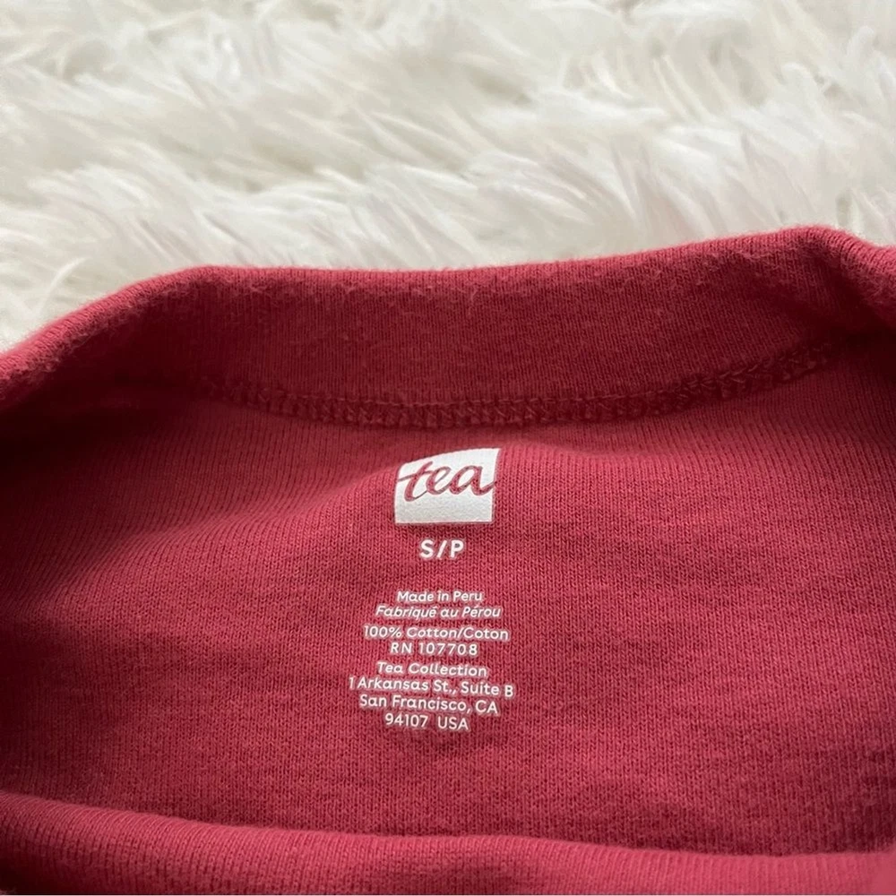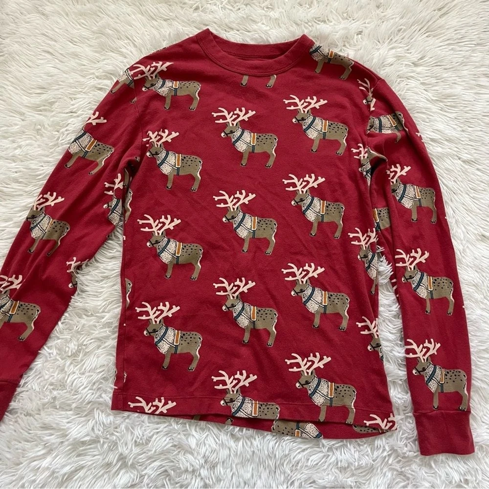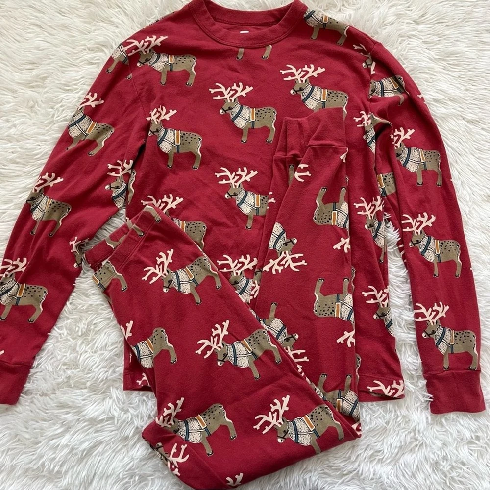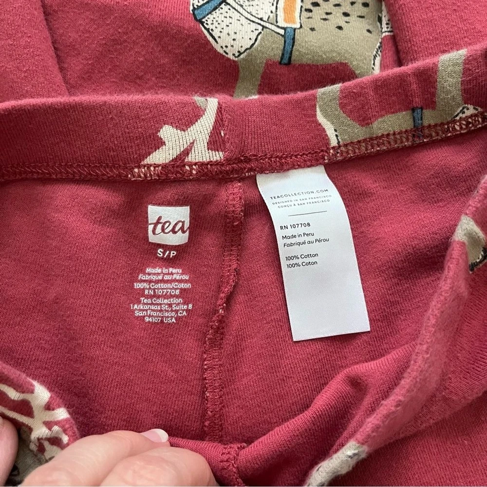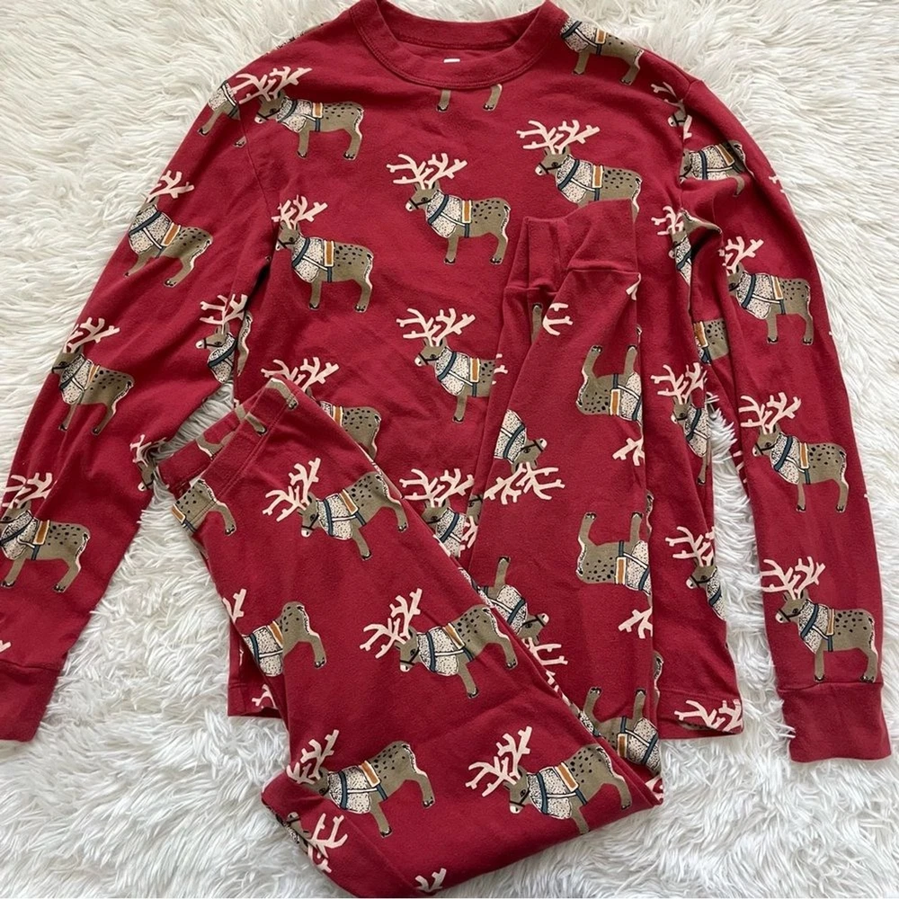 Get into the holiday spirit with this festive Tea Collection pajama set. The set includes a cozy pair of long pants and a matching top, both adorned with playful reindeer designs. The vibrant red color adds a pop of holiday cheer to your sleepwear collection. Crafted from high-quality materials, this pajama set is designed for comfort and durability. The set is available in a women's small size and is perfect for regular wear. Add some holiday cheer to your sleepwear routine with this Tea Collection pajama set. Tea collection reindeer Christmas pajamas set long pants women’s small Matching set includes: Crew neck long sleeve top Jogger style pants Gently pre loved, excellent condition All items ship the next business day! I love offers & give generous discounts on bundles
