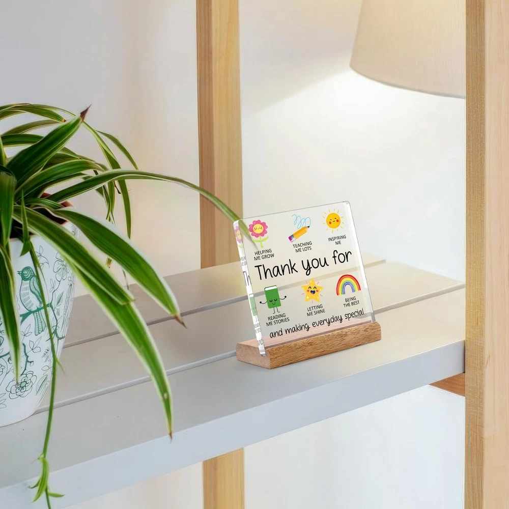 Teacher Appreciation Gifts for Women Men Teacher Desk Decor - Teacher Thank You for Helping Me Grow Gifts for Daycare Teacher Preschool Teacher New Teacher Goodbye Gift Ideas Acrylic Plaque Product Details Color: Color Brand: Cituarko Material: Wood, Acrylic Theme: Art Mounting Type: Tabletop Brand Name: Cituarko Mounting Type: Tabletop Shape: Square Style Name: Art Deco Theme: Art Color: Color Item Dimensions L x W: 4.7"L x 4.7"W Material Type: Wood, Acrylic Heartfelt Appreciation: Show your gratitude with this beautiful acrylic plaque, a perfect teacher appreciation gift. It features a thoughtful message and charming illustrations that capture the essence of teaching Quality Materials: Made from durable acrylic material, measuring 4.7 x 4.7 inches, and comes with a sturdy wooden base for easy display. This teacher gift would be a sentimental teacher appreciation day gift ideas Inspirational Design: Features cute icons representing teaching, growth, inspiration, and reading stories. The message "Thank you for helping me grow" is prominently displayed, making it a meaningful teacher appreciation gift Versatile Gift Idea: Perfect for end-of-year gifts, birthdays, or any occasion to express your appreciation for their hard work and dedication. Ideal as a daycare goodbye gift, preschool teacher gift, new teacher gift, and for the best teachers Uniquely Daily Reminders: A special touch that will remind teachers how much they mean to their students. This teacher gift will brighten up their workspace and serve as a lasting reminder of your gratitude Thank you gifts for women