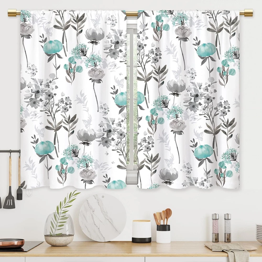 Farmhouse Chic: Add rustic charm to your kitchen with these rustic farm kitchen curtains The vintage printed design featuring teal gray flower adds a touch of country style to any space. Perfect Size: Each set includes 2 panels measuring 27.5" wide x 39" long, making them ideal for small windows or to style in a cafe-like manner. The rod pocket design ensures easy installation and a neat, tailored look. Light Filtering��The small curtains have just the right thickness to let in some light and also provide privacy. They will block a sun reflection, but not all of the light. You can cover the lower portion of your windows to provide privacy or used alone on shorter length windows, a great highlights to the kitchen. Washing Care: Machine wash cold, not fade, gentle cycle, with similar colors, tumble dry low, cool iron if needed, easy care curtains could save your times. After-sale Service: You have no risk to try and we will provide you the best service! We stick to pay attention to product quality, if there''s any quality problems please contact us.