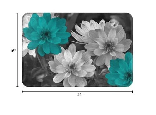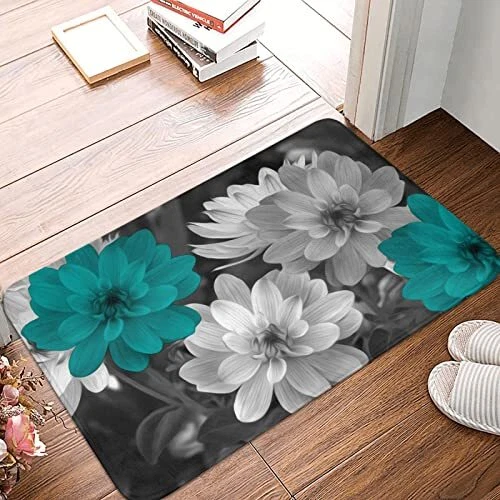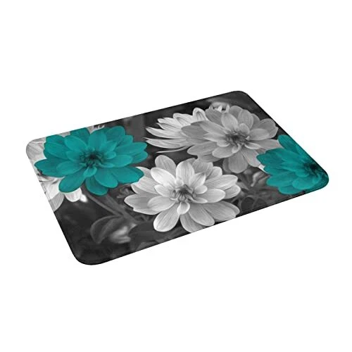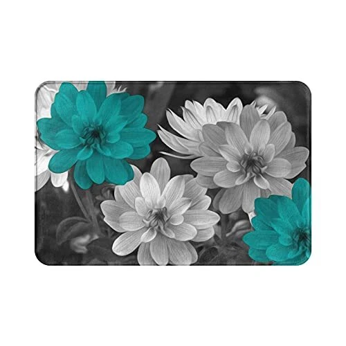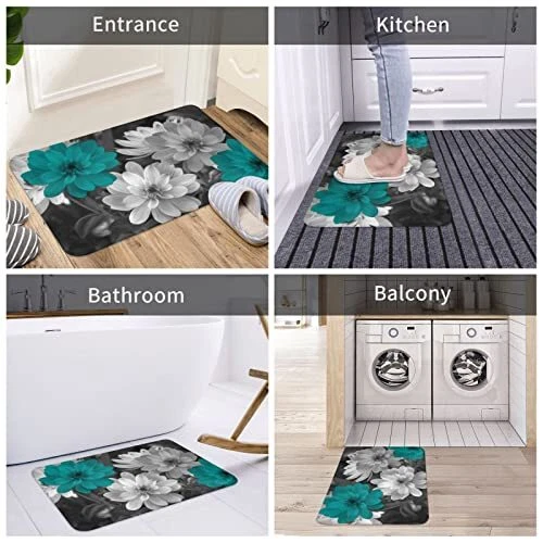 Teal Grey Flowers Bath Rug, Super Cozy Absorbent Bath Mat Non-Slip Rug for